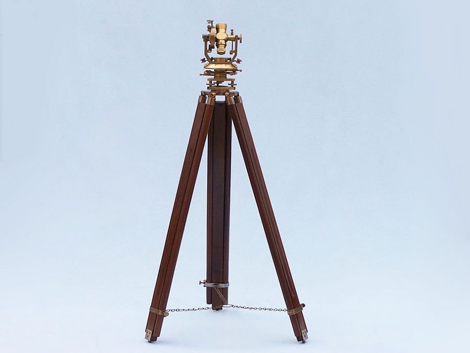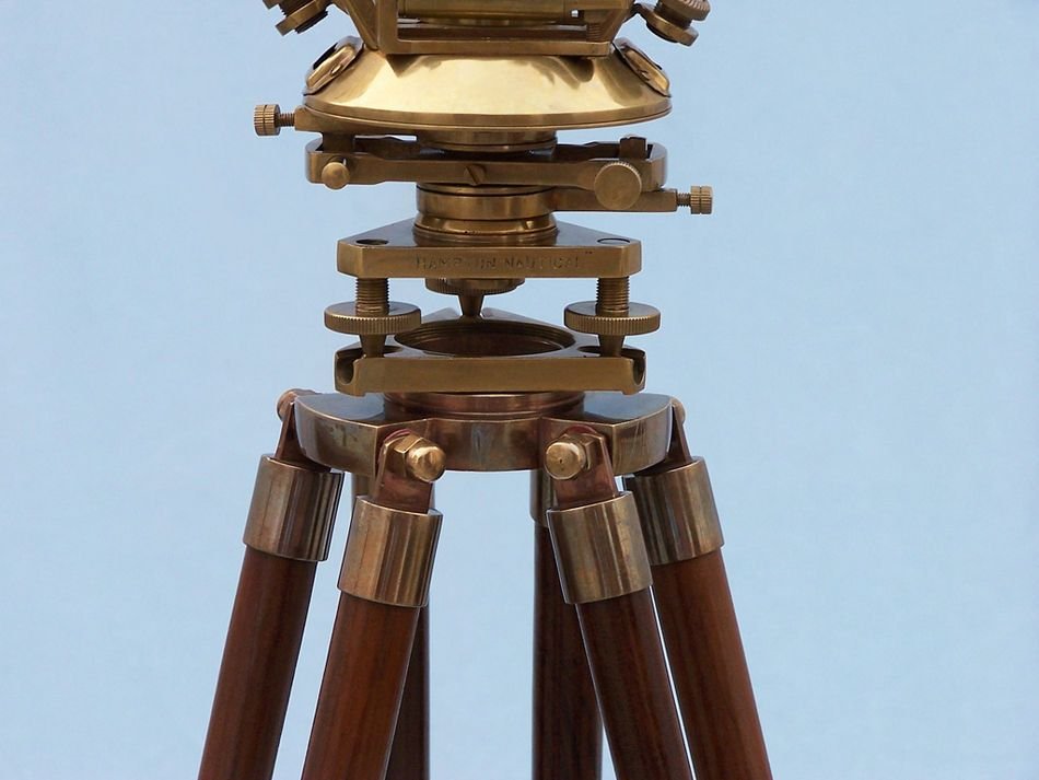 This Hampton Nautical Floor Standing Chrome Theodolite 62" is beautifully detailed, functional, and calibrated. Theodolites are still used today for ultra high precision optical alignment and measurement.