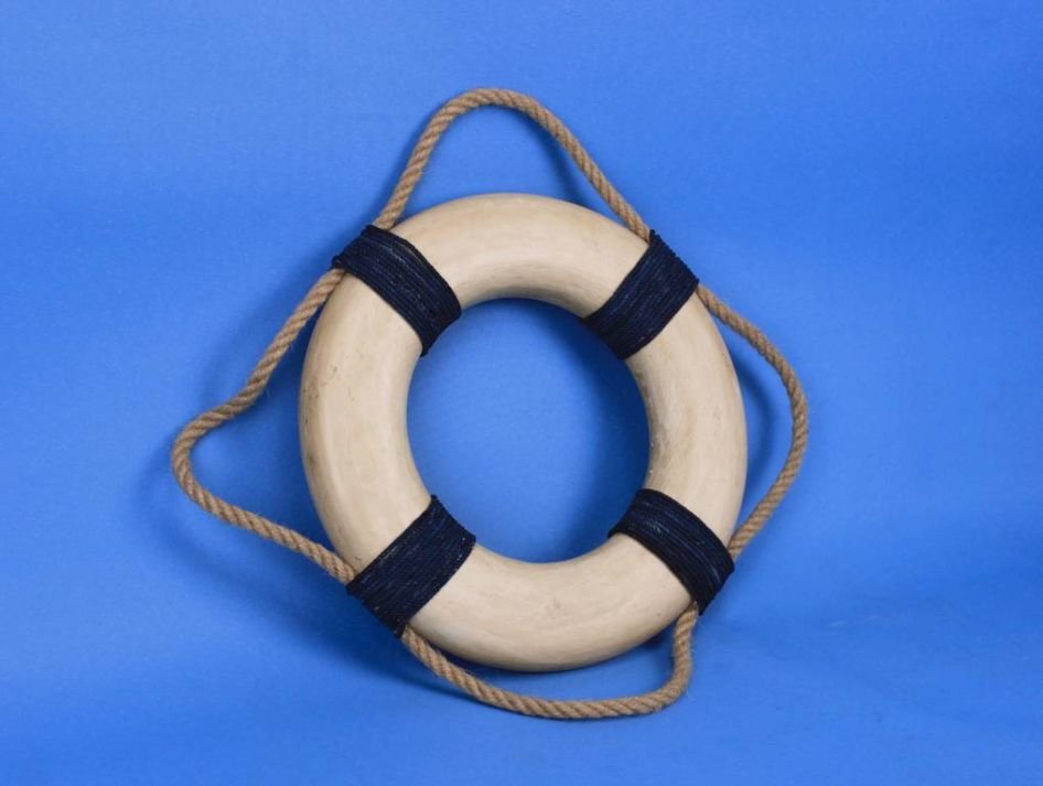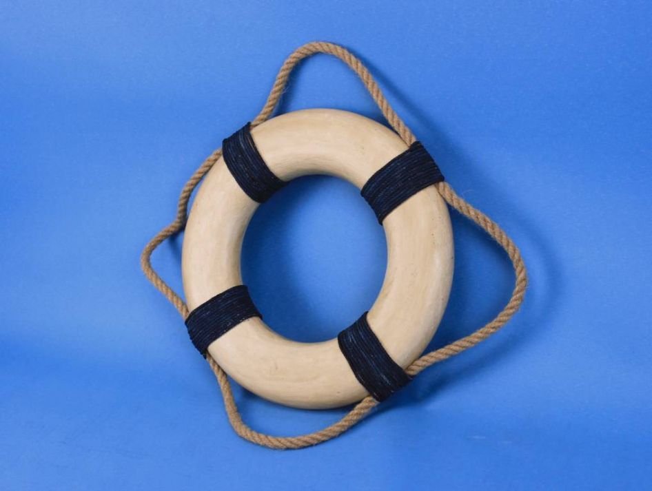 The Vintage Decorative White Lifering with Blue Rope Bands 10" is the perfect nautical accent to add to your home, office, or pool area. Blue rope straps accent the rustic lifering and will make guests and family feel at home and comfortable. Lightweight styrofoam construction makes the medium 10" lifering easy to hang anywhere so you can bring that nautical ocean feel into the comfort of your own home, office, nautical clubhouse, or poolhouse.