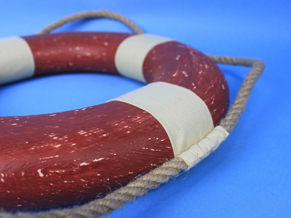 This Seaworn Decorative Red and White Vintage Lifering 15" will compliment any beach home. Our authentic rope used to wrap around this aged nautical lifering brings this beach bedroom accessory to life and will light up your beach living room, beach wedding, or beach themed party. Our life ring decorations are the perfect choice for any beach setting.