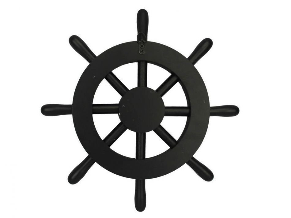 This Black Ship Wheel with 12" combines a bold finish with quality craftsmanship to make this the perfect nautical wall hanging to accent your home. Ideal for those who love colorful and vibrant nautical wall art, this beach decor will leave your guests in awe. This steering wheel has eight spokes surrounding it and is easily mountable to a wall if in need of a beach decoration.