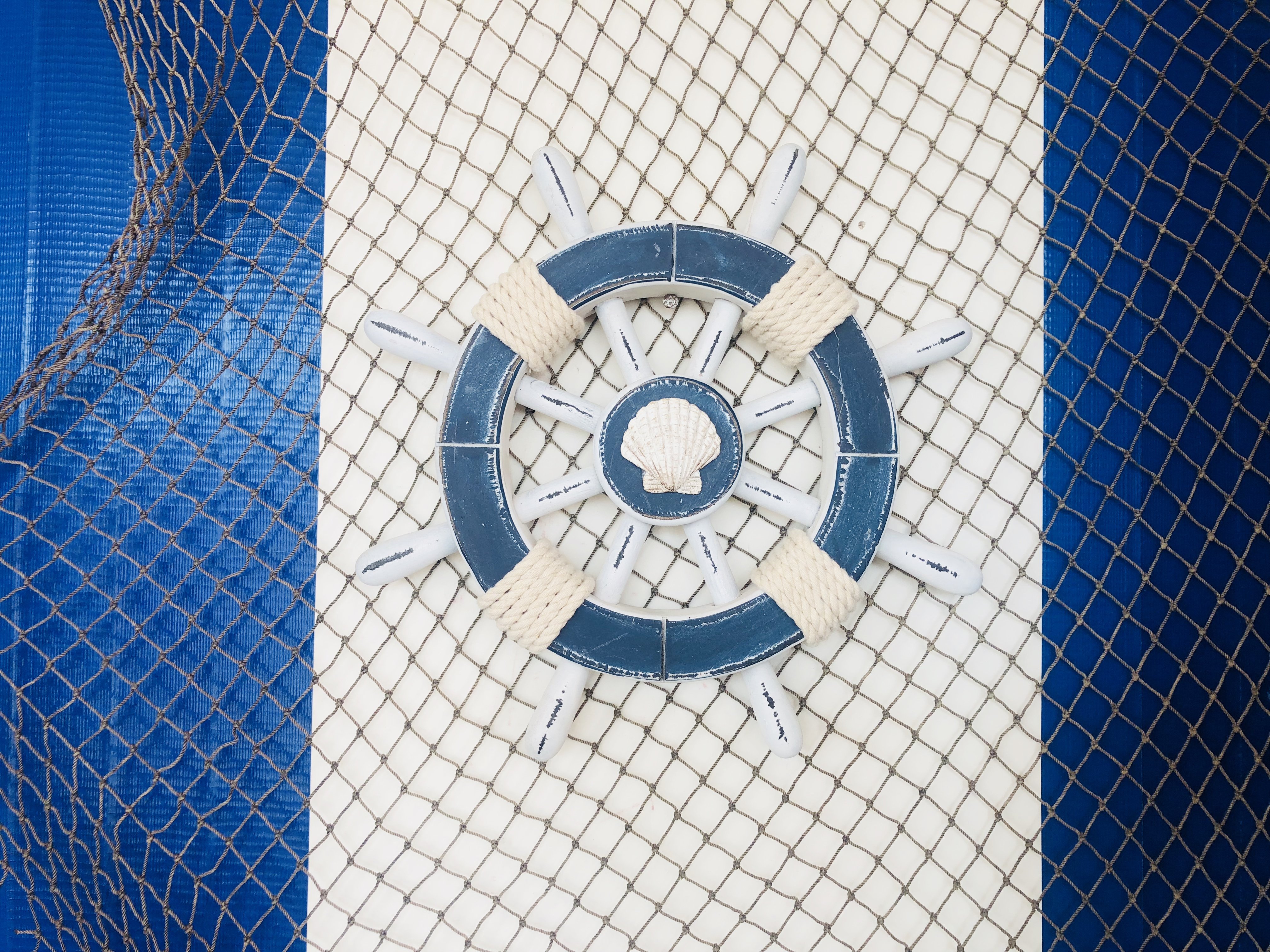 This Dark Blue Ship Wheel with Seashell 12" combines a bold finish with a seashell decoration to make this the perfect nautical wall hanging to accent your home. Ideal for those who love seashell decor and nautical wall art, this beach decor will leave your guests in awe. This steering wheel has eight spokes surrounding it and is easily mountable to a wall in need of a beach decoration.