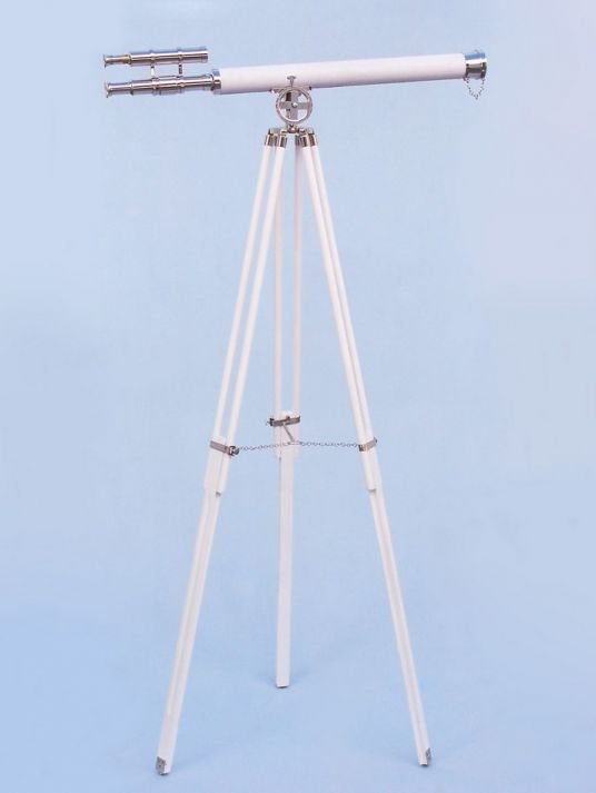 The Floor Standing Antique Copper Griffith Astro Telescope 64" with view finder is the pinnacle of our wide telescope selection. This beautiful antique copper finish telescope is mounted on a wooden tripod. The objective lens is 42mm. This telescope is a beautifully functioning nautical masterpiece, with a 42mm objective lens that produces up to 15x magnification. Focusing is accomplished by adjusting the eyepiece ring on the telescope tube. This antique copper nautical gem adds a shine to any room it enters. A removable antique copper finish cap, connected by a chain, protects the objective lens.
