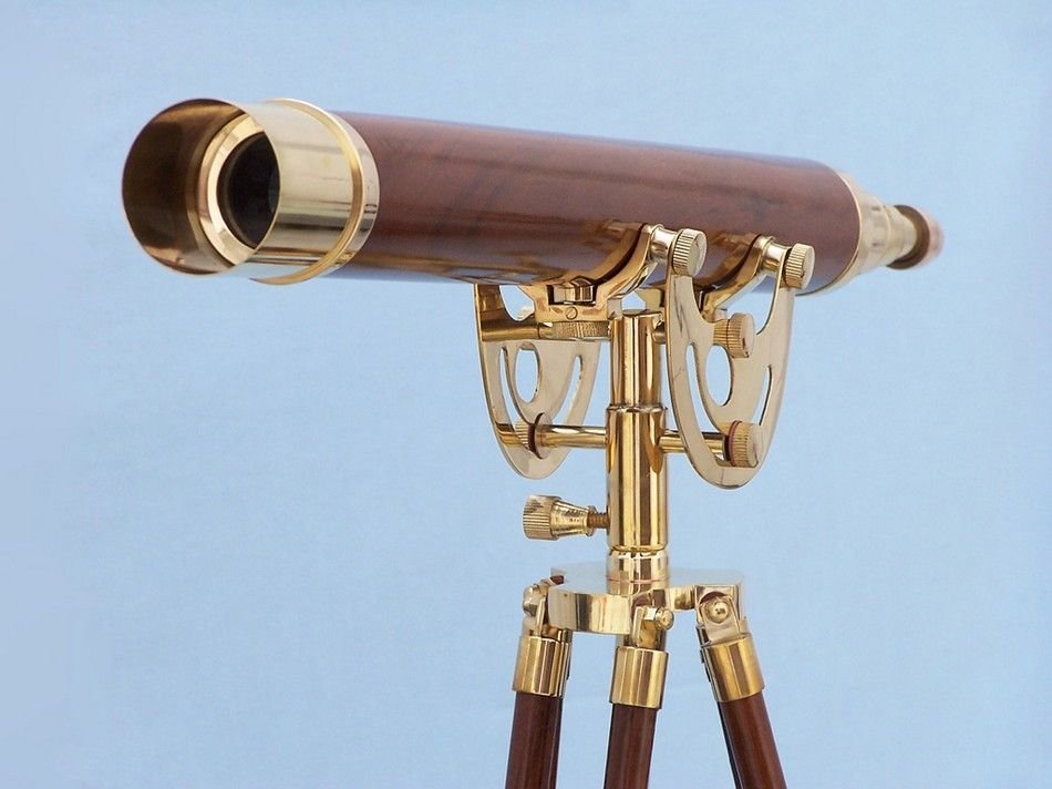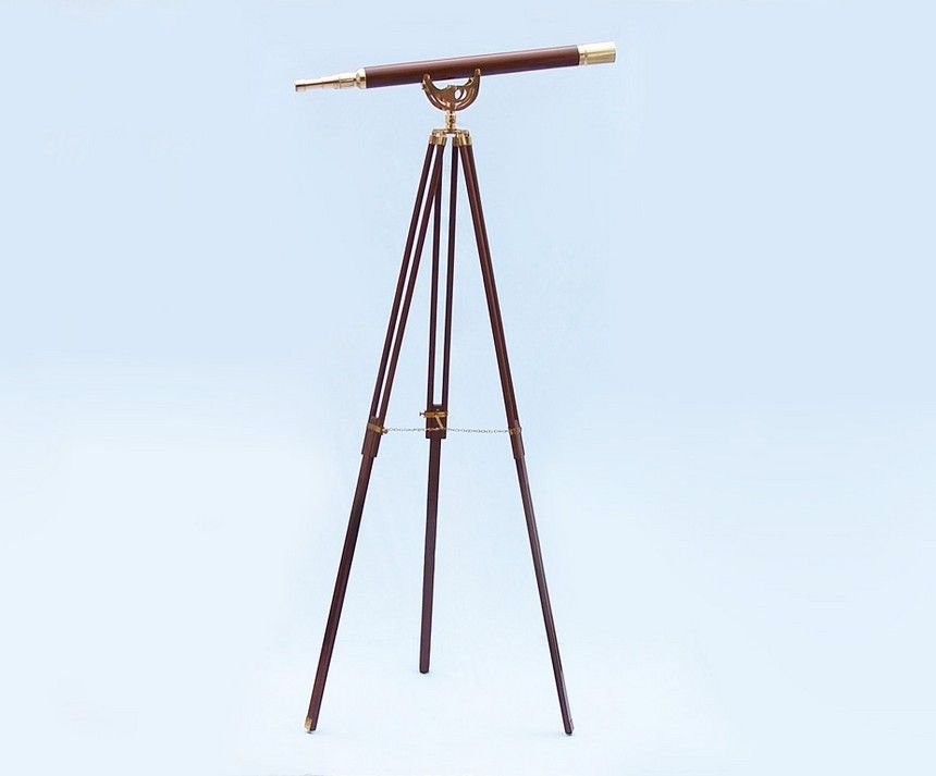 The Floor Standing Brushed Nickel/White Leather Anchormaster Telescope 65" is a beautiful, brushed nickel and leather, refractor telescope mounted on a wooden tripod. This white leather telescope is a fully functioning nautical masterpiece that adds class and sophistication to any room it’s in. This is a perfect nautical gift for the explorer in your life. The main scope is brushed nickel wrapped in white leather, which shines beautifully when placed in the sunlight. Focusing is accomplished by adjusting the eyepiece ring on the telescope tube, with up to 18x magnification.