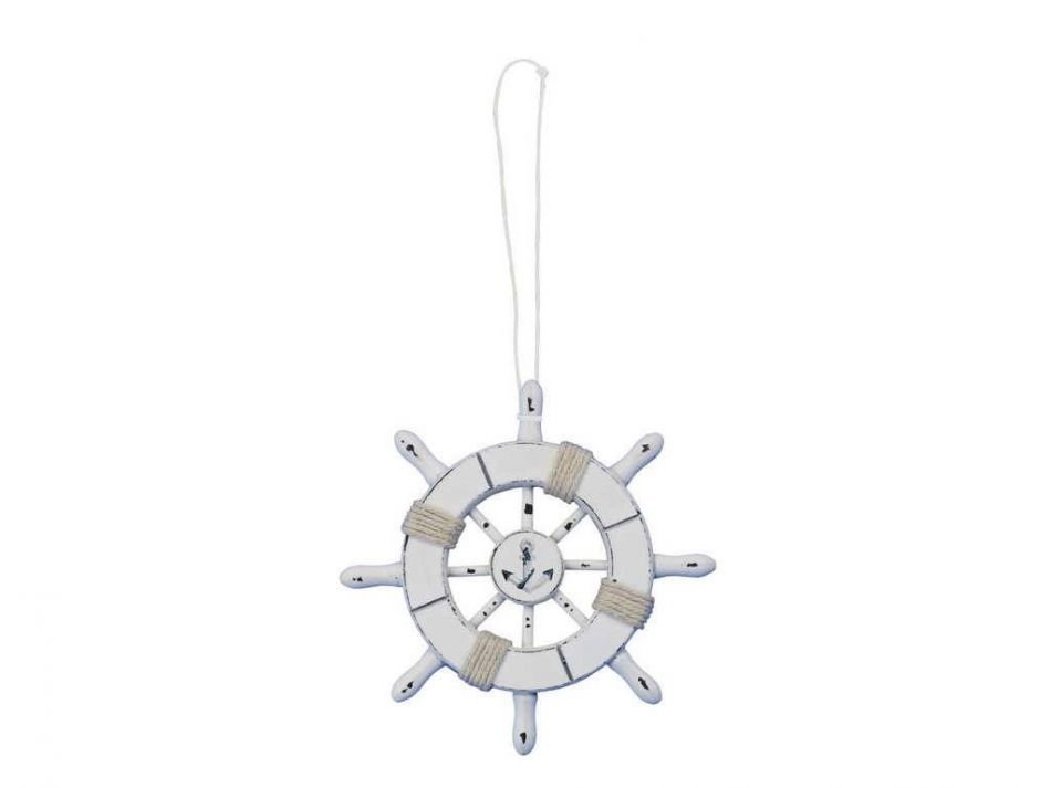 This White Decorative Ship Wheel With Anchor Christmas Tree Ornament 6" is perfectly combined with the warmth of the holiday season and the nautical lifestyle.  This ship wheel ornament decoration will light up any tree and adds the final nautical touch your Christmas needs. This charming boats steering wheel ornament has eight spokes and can be easily hung onto any Christmas Tree.