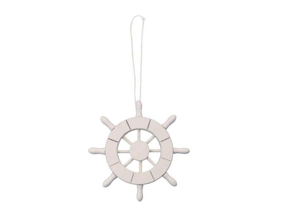 This White Decorative Ship Wheel Christmas Tree Ornament 6" is perfectly combined with the warmth of the holiday season and the nautical lifestyle.  This ship wheel ornament decoration will light up any tree and adds the final nautical touch your Christmas needs. This charming boats steering wheel ornament has eight spokes and can be easily hung onto any Christmas Tree.