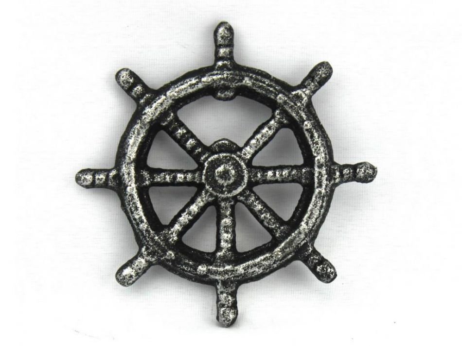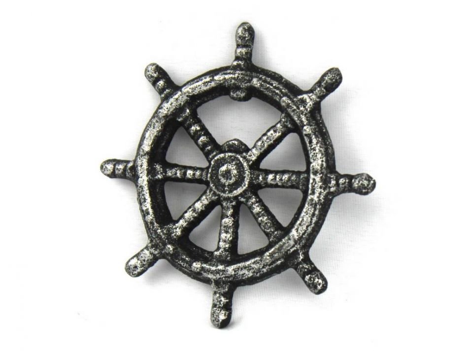 The Hampton Nautical Antique Silver Cast Iron Ship Wheel Bottle Opener 3.75" perfectly accents any nautical themed kitchen. Crafted from cast iron and aged for an antique finish, this bottle opener will open even the most difficult of bottles with ease.