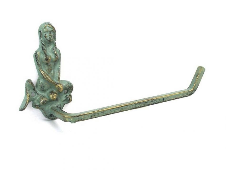 This Antique Bronze Cast Iron Mermaid Hand Towel Holder 10" is perfect for any beach inspired bathroom or kitchen. It adds charm to any beach room, while impressing your guests with their substance and thoughtfulness. Ideal for hanging hand towels, this durable hand towel holder 10" is crafted from cast iron. Easily mountable, display this decorative holder to show those who visit your home the affinity for the sea-faring lifestyle.