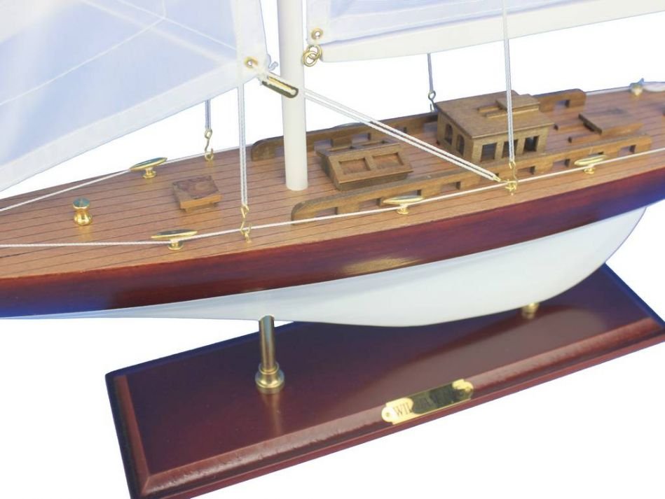 Named after America’s Cup yacht designer William Fife, this sailboat will surely brighten any room with the graceful speed of the waves and unbound freedom of the sea. The perfect highlight for a bedroom, beach house, office, or meeting room sailing from atop a table, mantle,or shelf, William Fife are yacht models of true elegance.