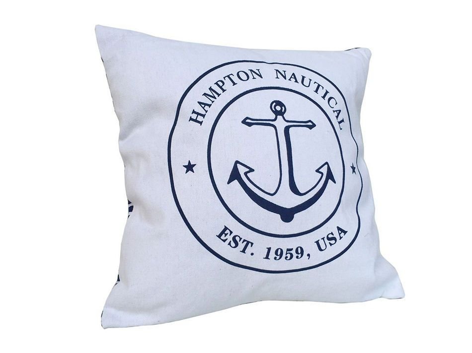 Decorative White Hampton Nautical with Anchor Throw Pillow 16"