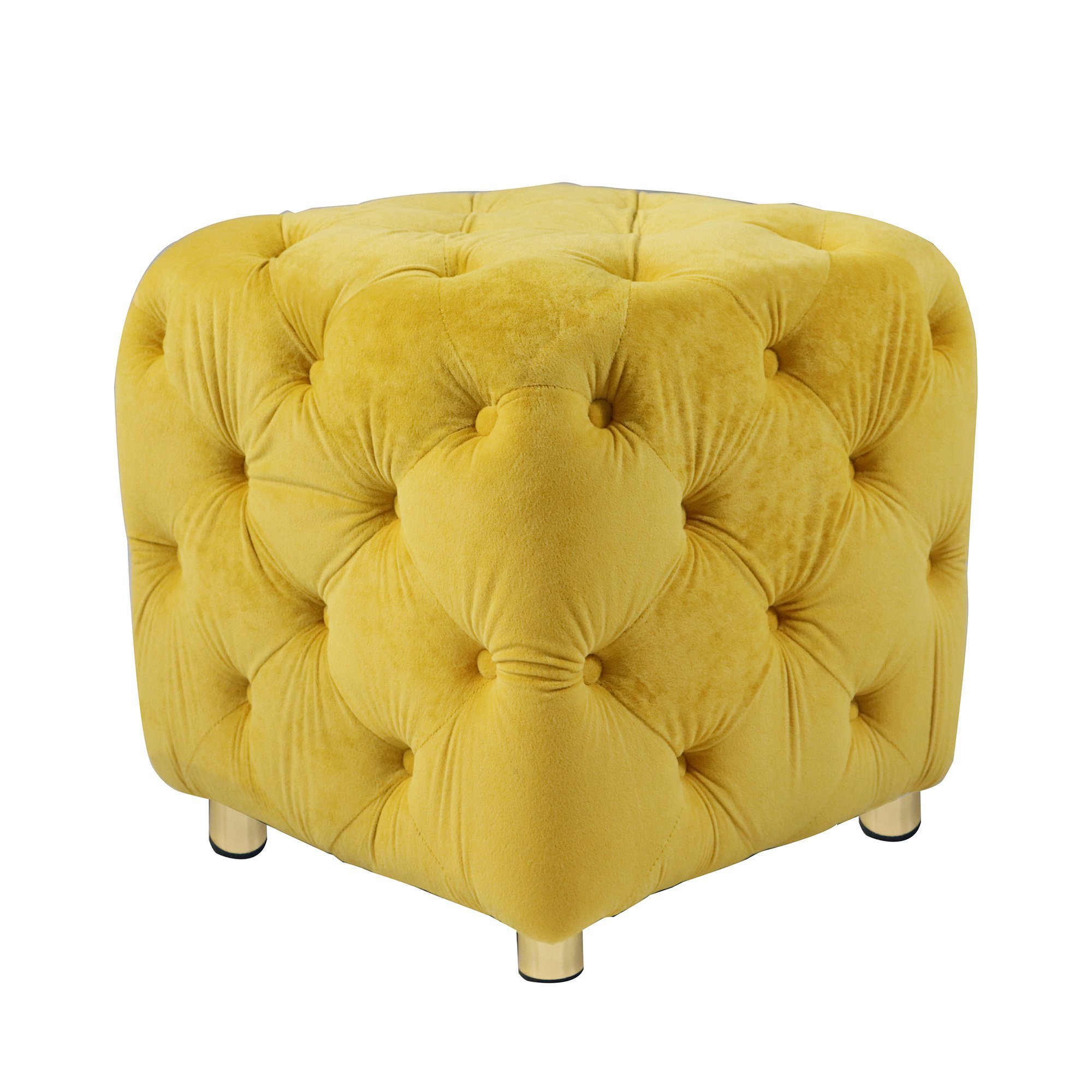 Yellow Modern Velvet Upholstered Ottoman, Exquisite Small End Table, Soft Foot Stool,Dressing Makeup Chair, Comfortable Seat for Living Room, Bedroom