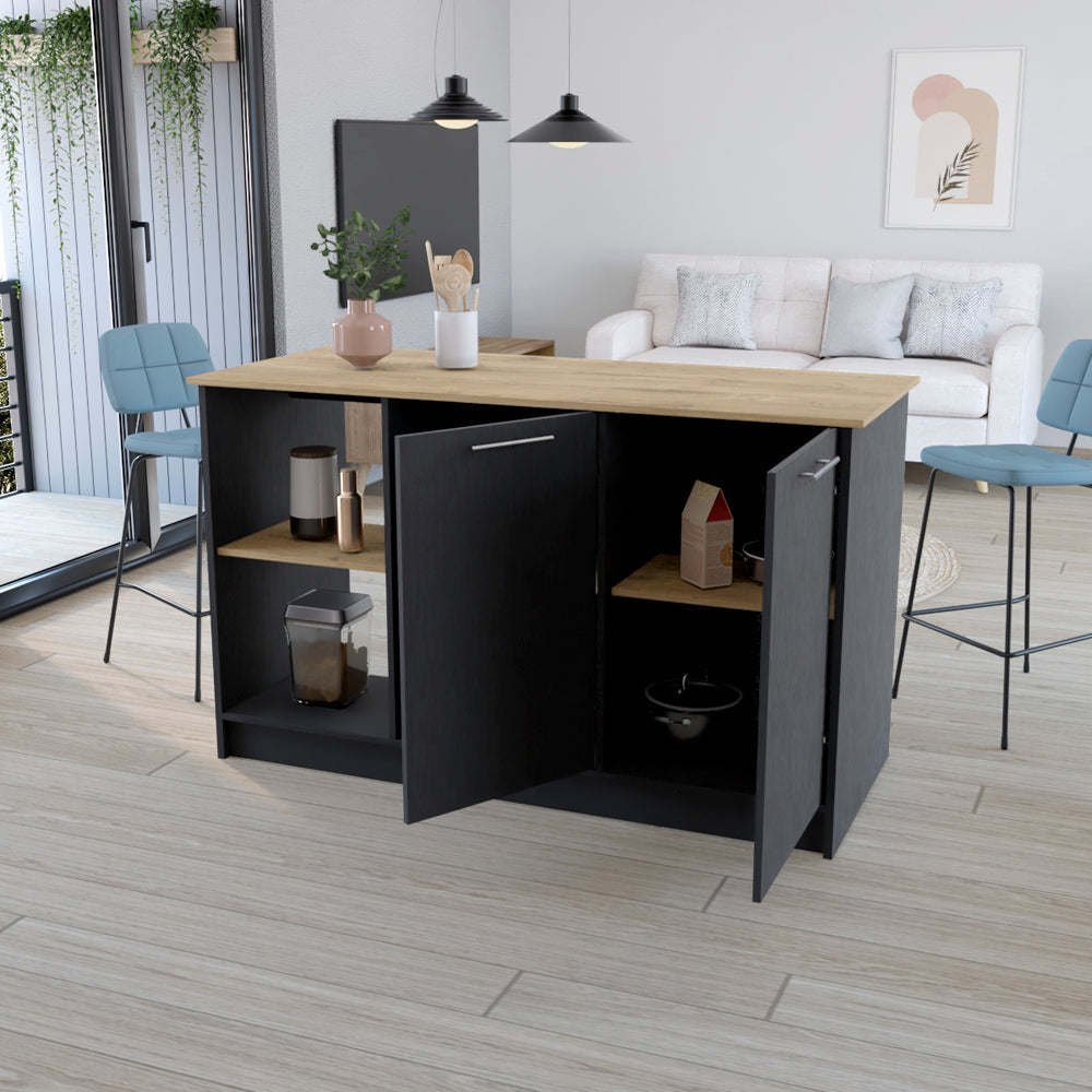 The Padua kitchen island will give you the extra space you've been looking for, the modern design and color scheme will make it stand out and attract attention, it includes four open shelves, two cabinets and a broad countertop. Designed in elegant light oak & white manufactured wood. Dimensions:Height: 45'Width: 33'Depth: 13,70 'Furniture Type: Ready to assemble (full assembly required).Certifications: CARB phase II compliant – TSCA Title VI Compliant. Warranty: 1-year warranty coverage in wooden parts- 1-year warranty coverage in hardware pieces since it´s manufacturing date found in the lot number printed in the product box Shipment details: Free shipping to the 48 contiguous states - delivery time: Between 2 and 5 days depending on the customer's location, season and weather factors.Other details: This product does not include decorative or background elements; Check that the box is in good condition, well packed and check with the help of the manual that the corresponding parts have been included; For more information regarding warranty, shipment details, cancellations, returns & replacement parts go to the bottom section of our website to learn more; Installation & Assembly Instructions included.