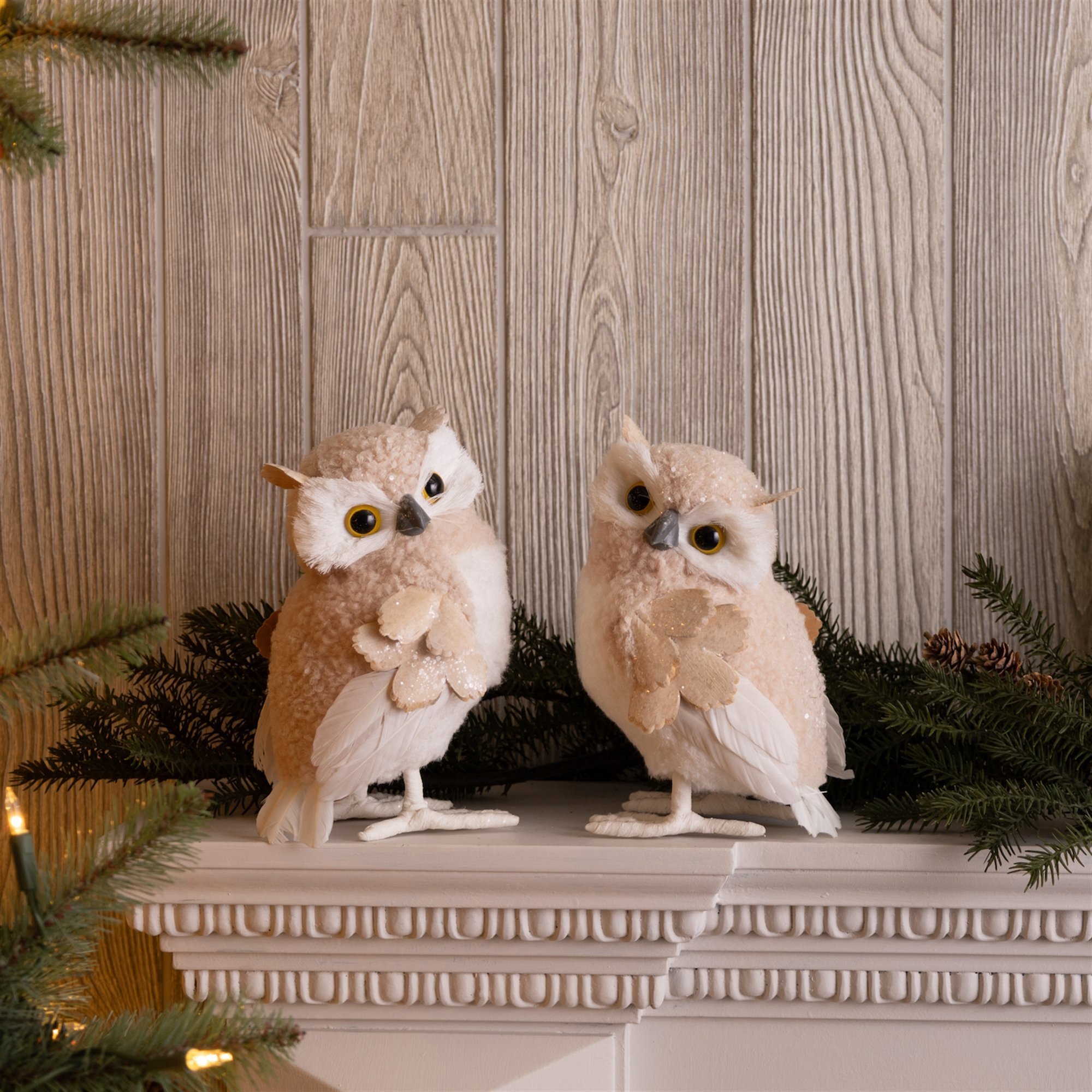 Add a touch of nature to your winter decor with this stunning set of Feathered Owls. Featuring two assorted designs, this set is a great fit for your woodland or modern style of holiday decor. The trendy biege and white tones color paired with the realistic feather design and chic glittered accents is the perfect combination to create a stunning display. The quality foam and polyester composition is sure to last for seasons to come. Display the pieces together to make a statement, or display them alongside your other holiday decor to add character to the space.