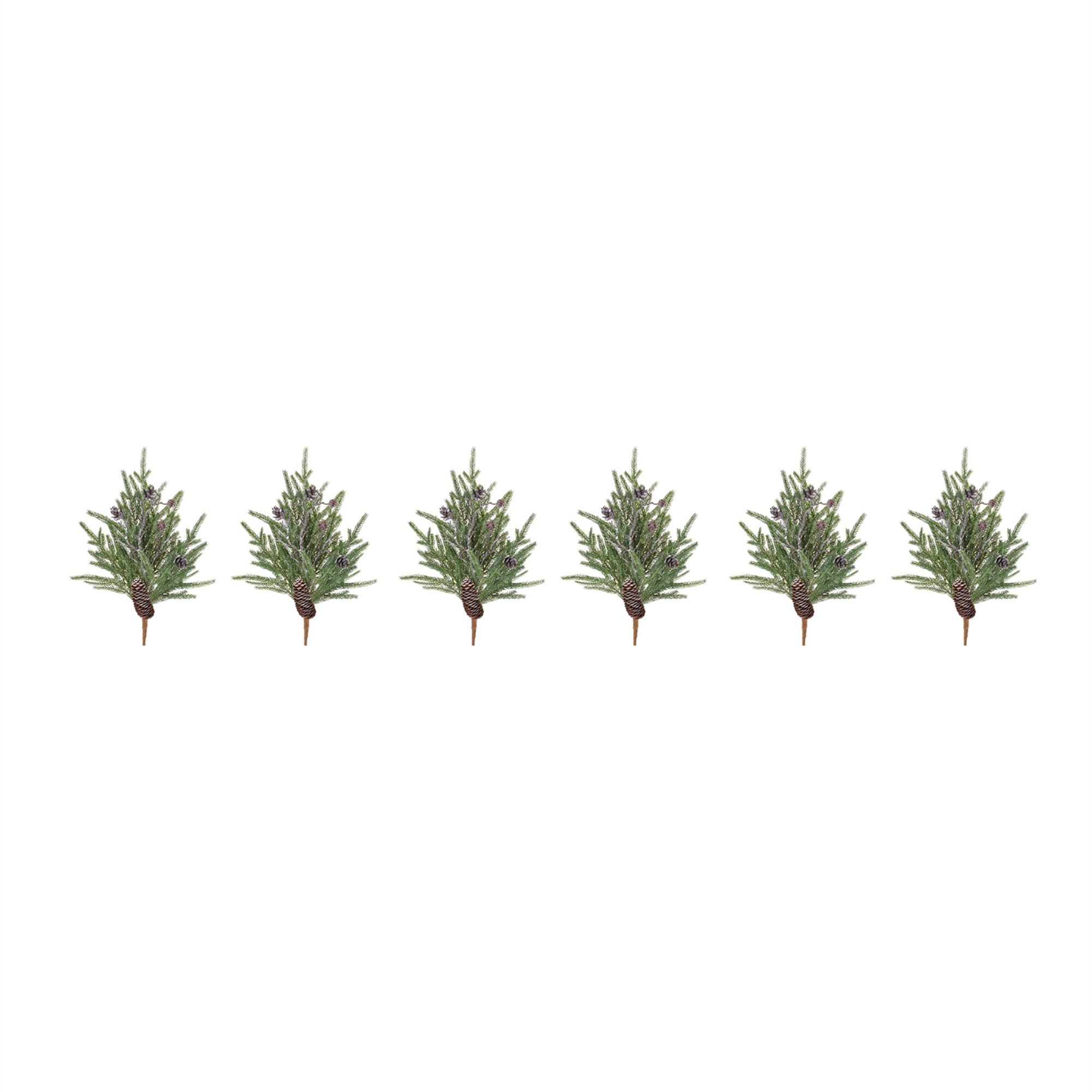 Add a touch of nature to your holiday decor with this beautiful set of Pine and Cone Spray. Featuring 6 pieces, this set is a great accent to your Christmas tree, holiday porch pot, or tabletop vase arrangement. The wintry brown and white tones paired with the pinecone accent is the perfect combination to create a memorable display. The quality plastic and pinecone composition is sure to endure for seasons to come. Complete your holiday decor with this stunning set Sprays!