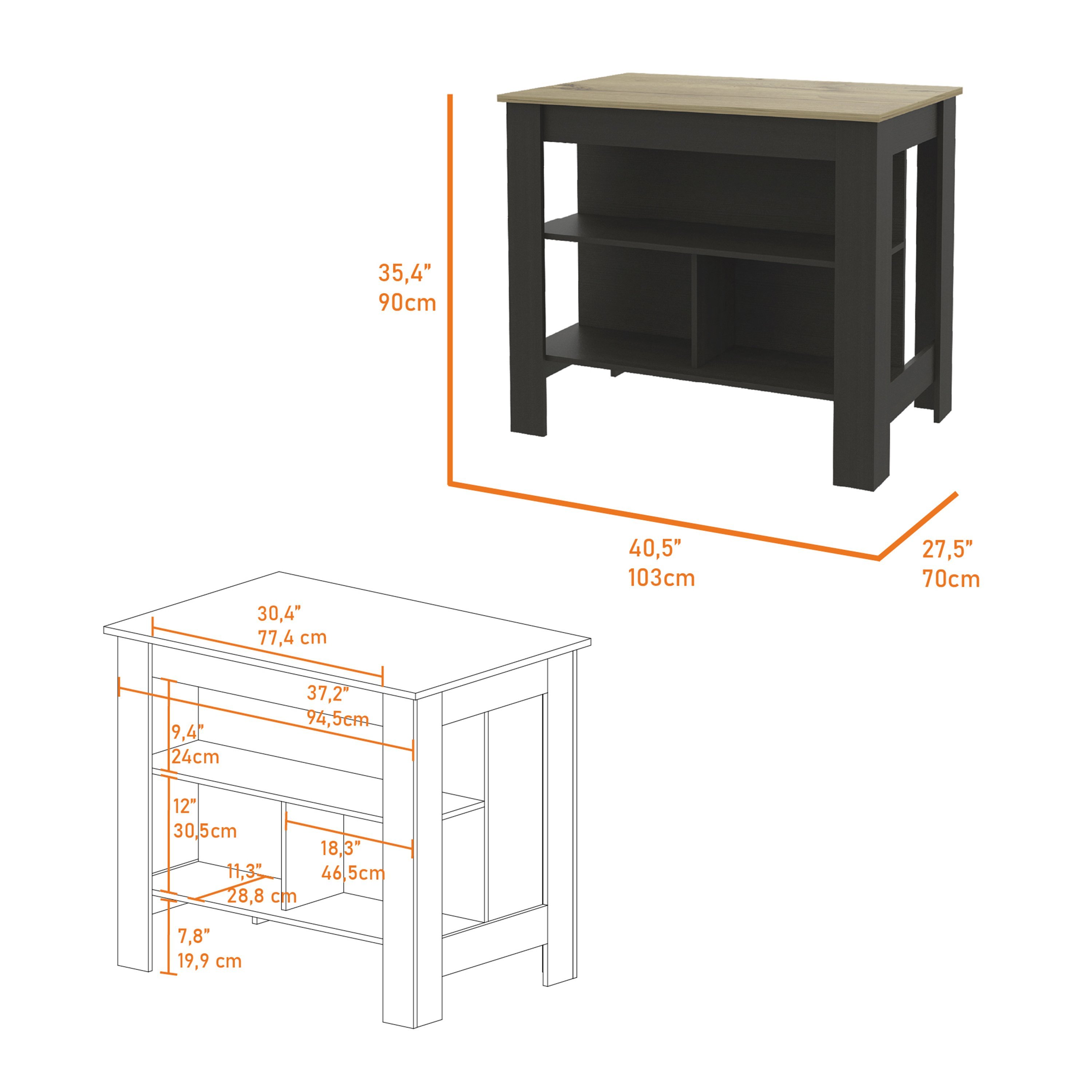 Set includesOne (1) kitchen islandDimensions35.4 inches high x 40.5 inches wide x 27.5 inches deepFinish ColorBlack and Ibiza MarbleMaterialsManufactured woodNumber of shelves3