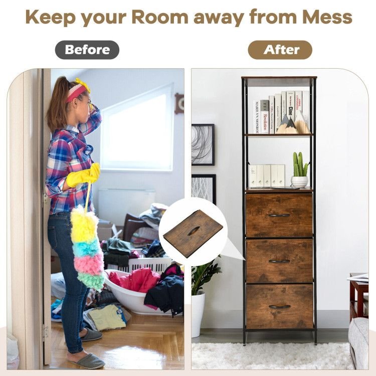 Freestanding Vertical 3 Drawer Dresser with 3 Shelves