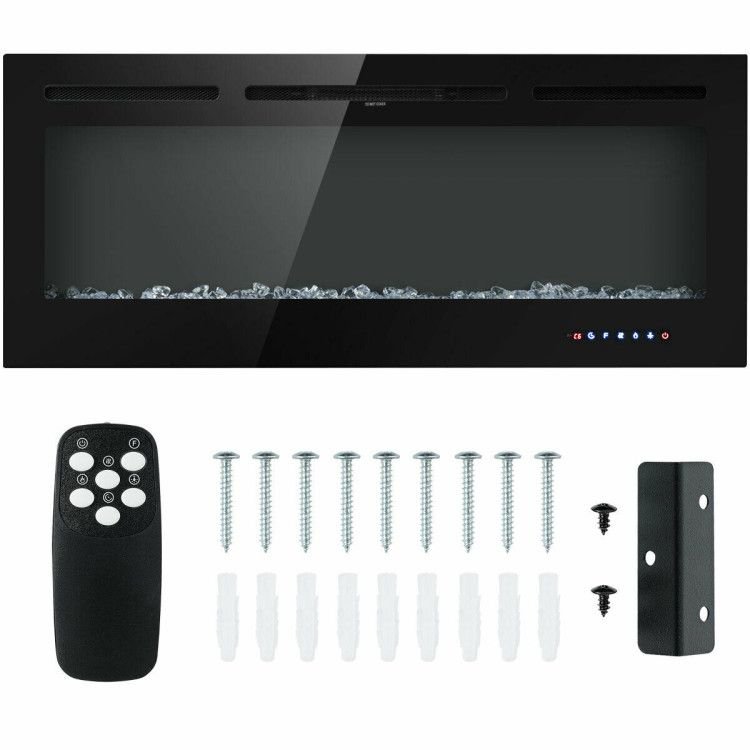 Heater with low 750W and high 1500W power to heat a room quicklyTemperature from 62℉-82℉ to make a warm and cozy environmentCreates realistic flame effects with 9 flame colors and 5 light intensitiesHigh-intensity LED lights with display show brighter and higher flameLED Screen panel and remote control for more convenient operation6 Buttons to set: Power; Color; Flame; Heater; Temperature; and Timer0.5-8 hour timing and overheat protection for efficient and safer useAdvanced metal plate and thickened tempered glass ensure durabilityEasy to install with two options: wall-mounted/recessed installation
