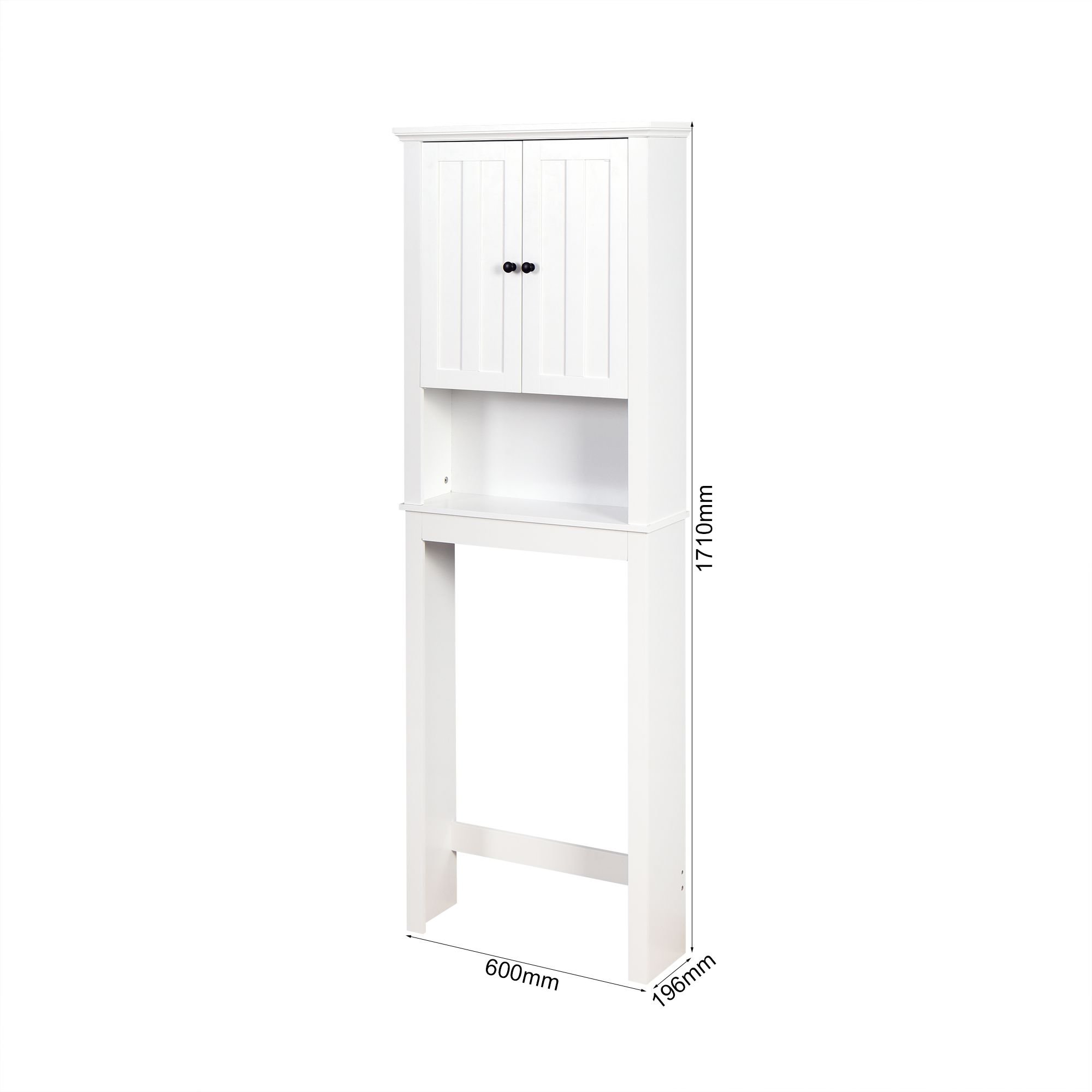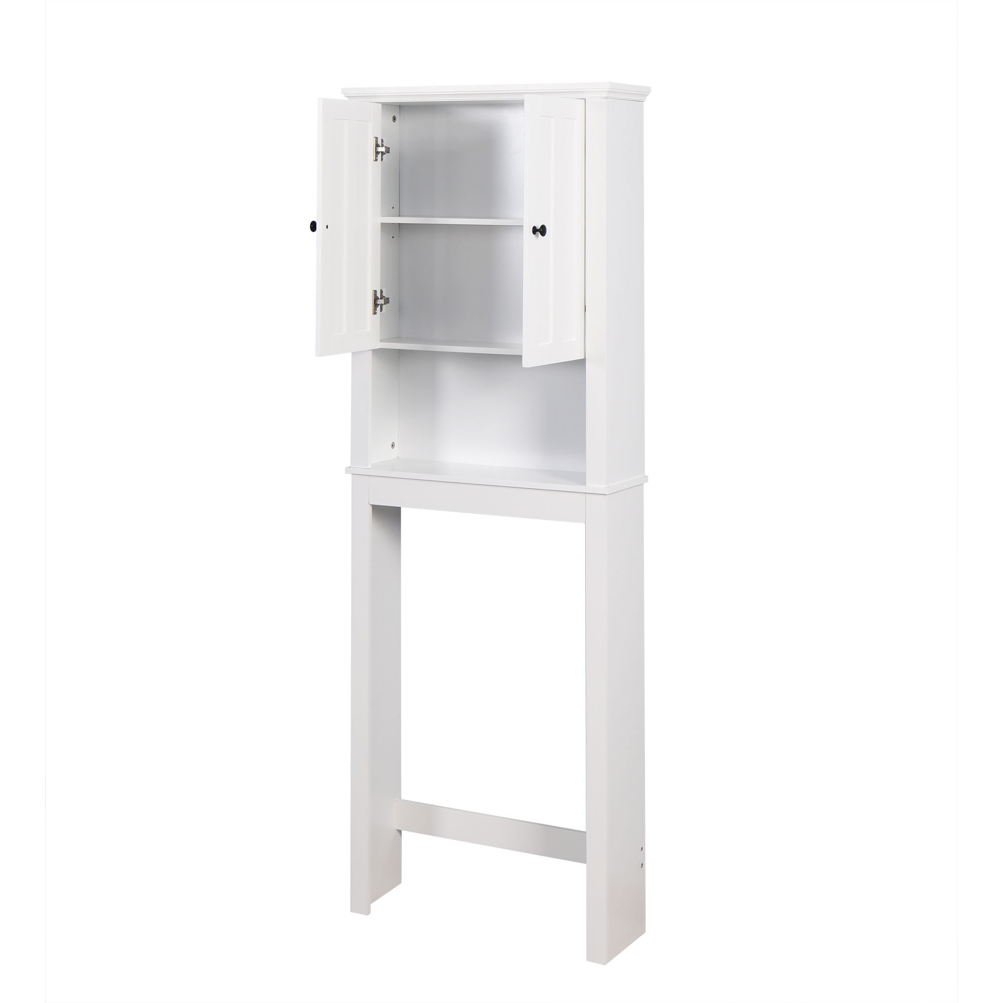 PREMIUM MATERIAL: This bathroom cabinet over the toilet is constructed of high-quality engineered wood, adding style and charm with carved door panel and black knobs. The anti-toppling fitting can anchor to the wall for security and stability.
