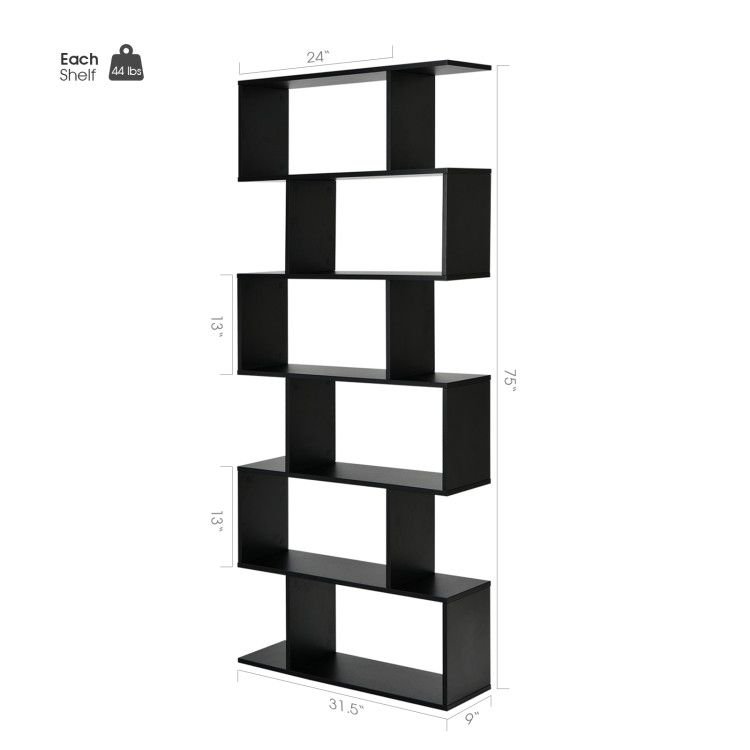 1.Functional Space Organizer: This 6-tier bookcase measures 75 inches high and provides ample and classified spaces for storage or display. With these cube compartments, you can better organize your stuff or collection, such as books, albums and trophies. The open shelves offer easy access to those frequently used things.