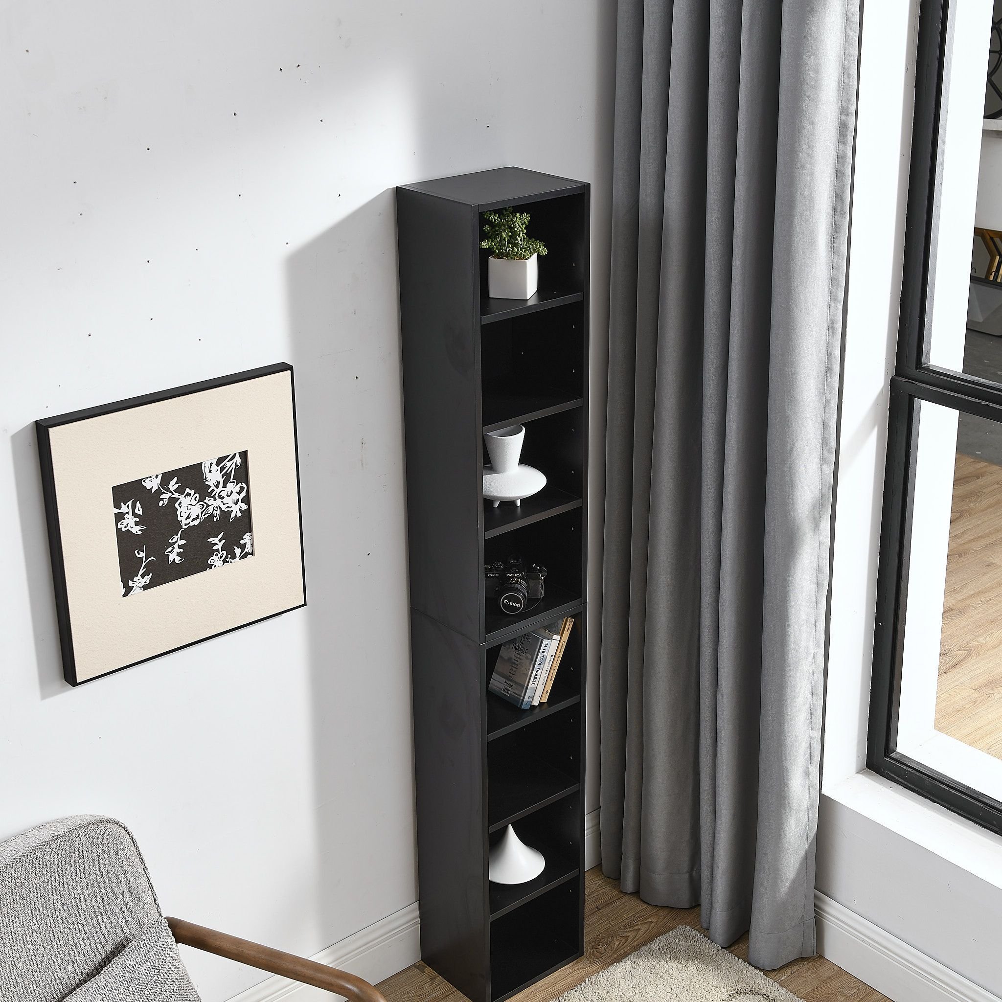 Home > 8-Tier Media Tower Rack, CD DVD Slim Storage Cabinet with Adjustable Shelves, Tall Narrow Bookcase Display Bookshelf for Home Office