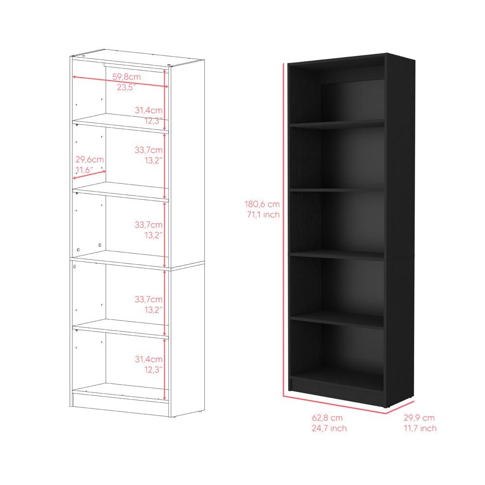 Elevate your living space with the Bookcase Benzoni, where refined craftsmanship intertwines with practical design. Four generously proportioned shelves, detailed at 15.7"H x 18.3"H x 23.5"W, stand ready to house your curated collection of literature, keepsakes, and artful decorations. Impeccably crafted from manufactured wood, it exudes strength and understated elegance. Whether you're looking to organize your cherished books or showcase your decor pieces, this bookcase delivers on all fronts. Available in black, white, snow white and matt gray/white finishes.Dimensions:Height: 71,1" Width: 24,7'Depth: 11,7'Furniture Type: Ready to assemble (full assembly required).Certifications: CARB phase II compliant – TSCA Title VI Compliant.Warranty: 1-year warranty coverage in wooden parts- 1-year warranty coverage in hardware pieces since its manufacturing date found in the lot number printed in the product box.