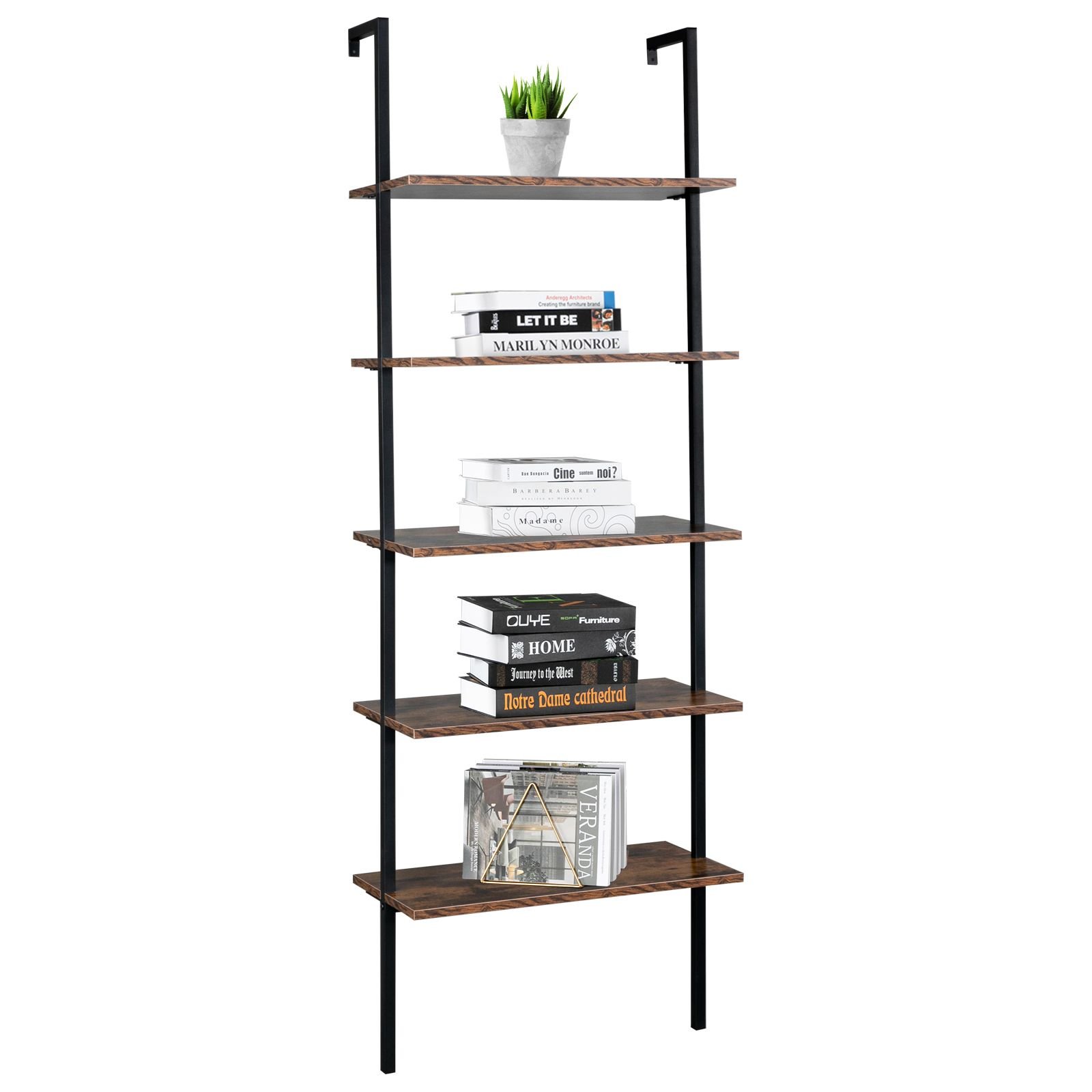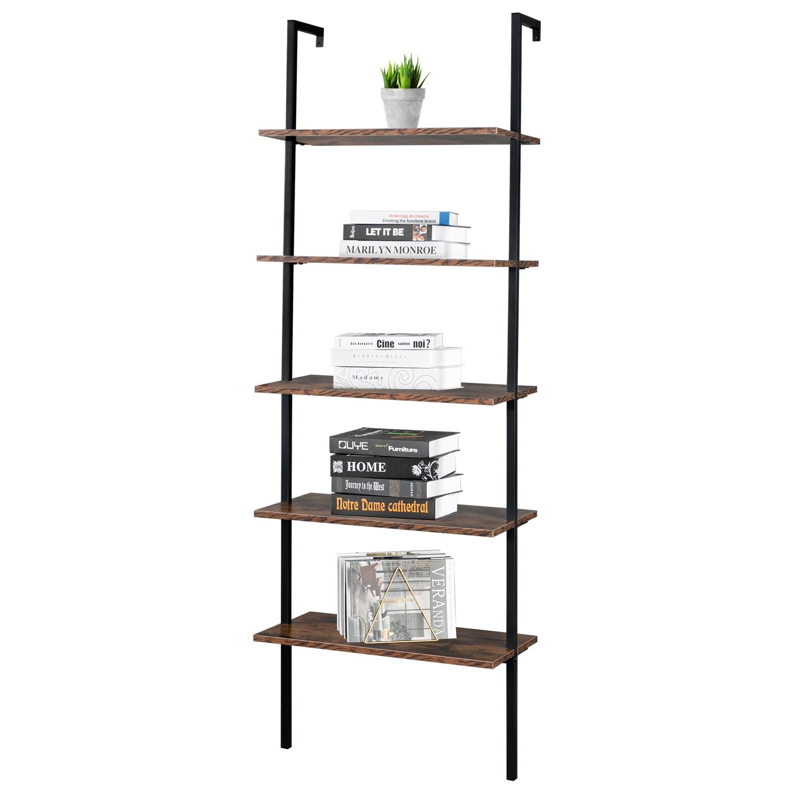 Minimalist Industrial-Chic Wall Mounted 5-Tier Etagere Ladder Shelf Bookcase