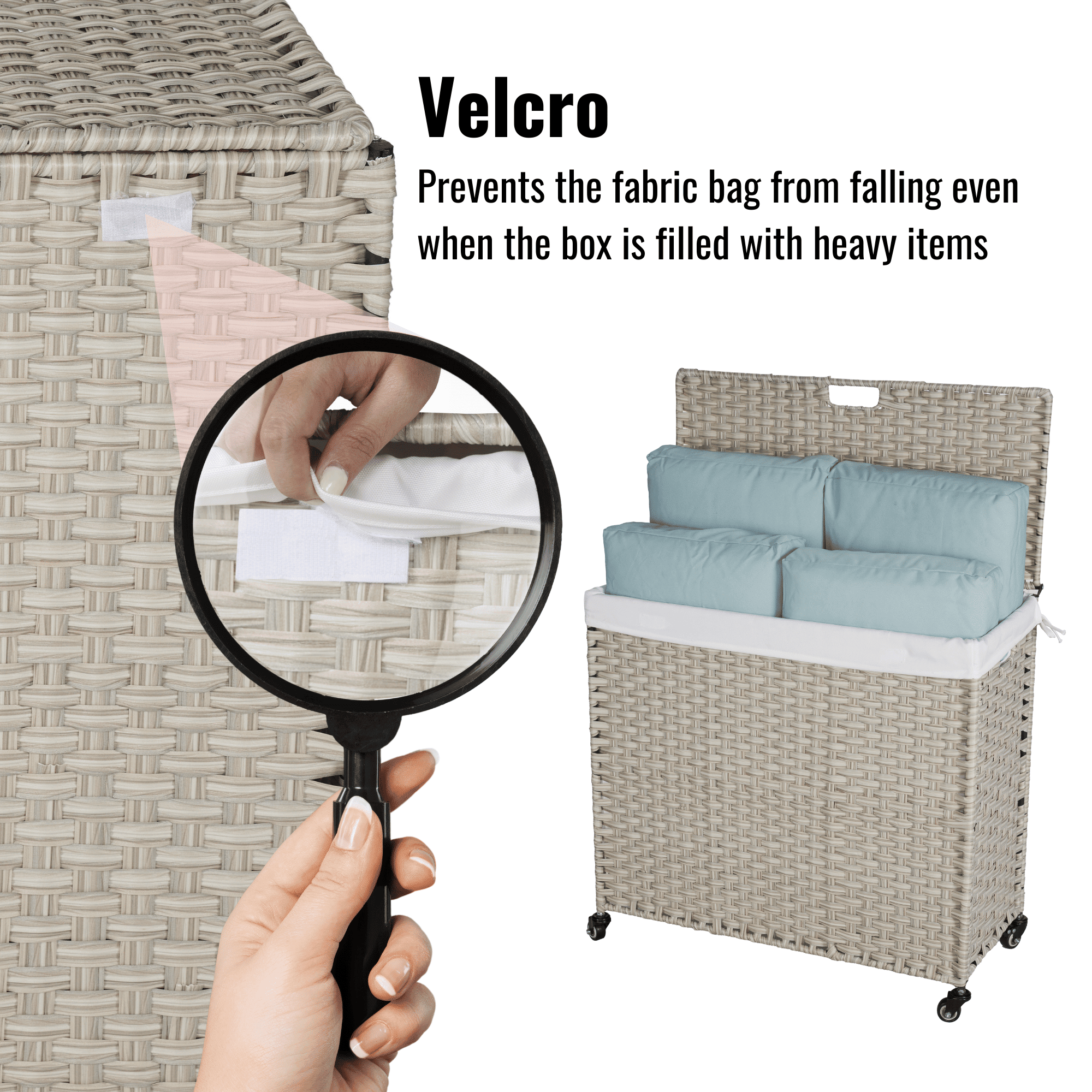 SATISFIED IN EVERY DETAIL - With research and improvements, our clothes hamper is equipped with velcros on both sides of the clothes hamper to ensure the hamper bags do not fall when filled with clothes. Instead of using plastic wheels, our wicker laundry basket uses steel and rubber wheels that are friendly to your floors and more durable.