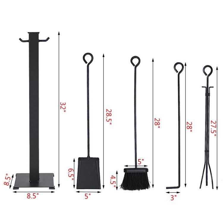 The fireplace decoration toolset includes tong, poker, base, shovel and brush.