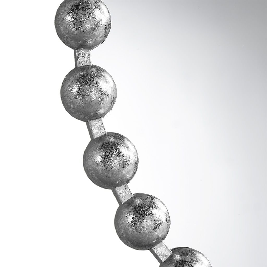 Reimagine your space with our Madison Park Signature Marlowe Beaded Round Wall Mirror. This round mirror features a stylized spherical iron frame finished with an antique metallic silver foil, creating a rich sheen and light speckled pattern effect. The keyhole hook fixture on the back of the mirror allows for effortless hanging on your wall. Incorporate this wall decor mirror into any room or space, for the perfect combination of modern glam and flair. Wipe clean with damp cloth and handle with care.