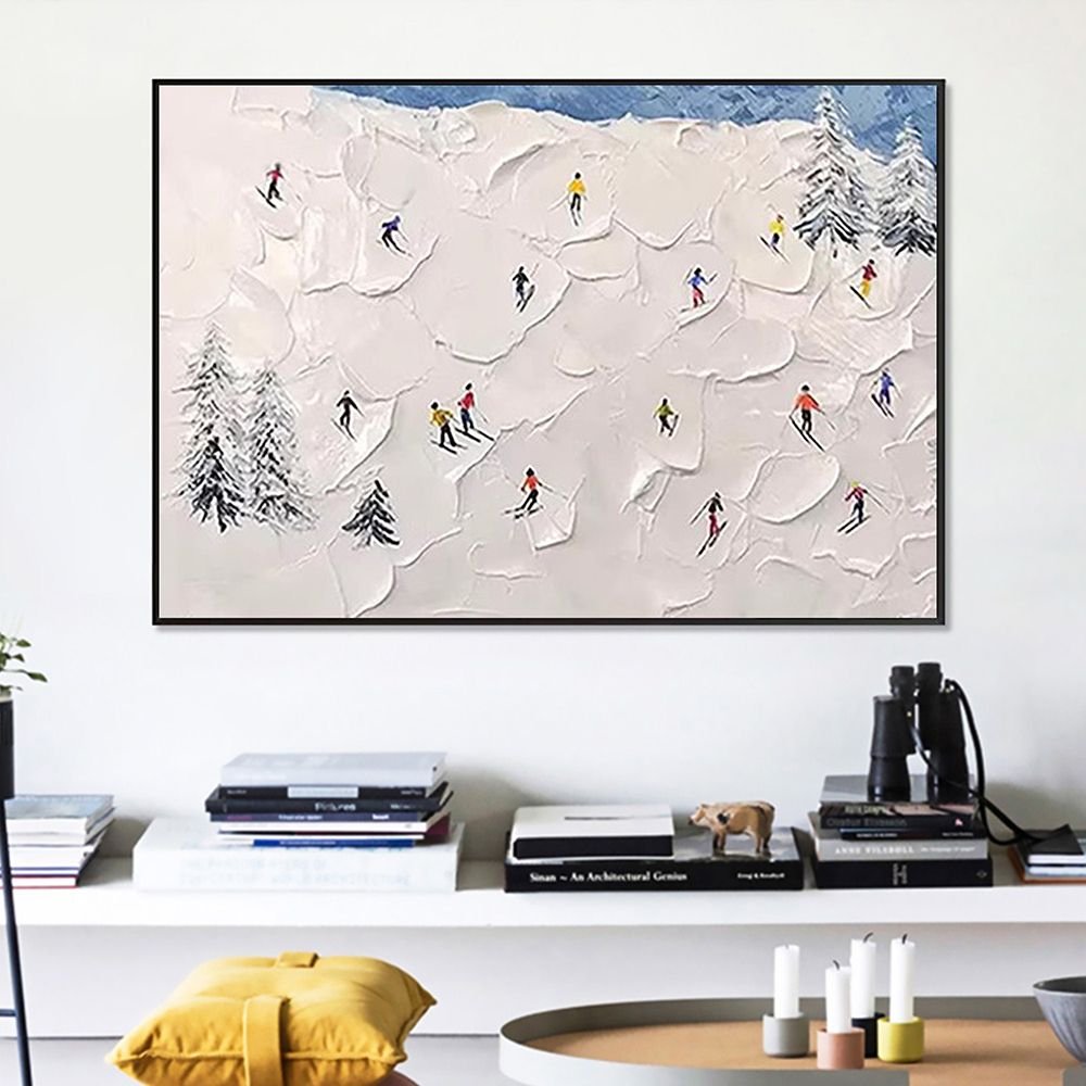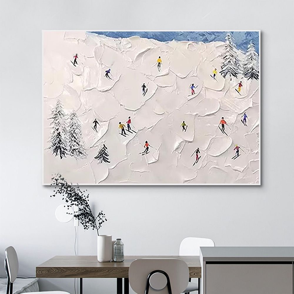 Home > Handmade Oil Painting Original Abstract Snowy Mountain Landscape Oil Painting on Canvas Modern Ski Sport Painting Texture Acrylic Wall Art Living Room