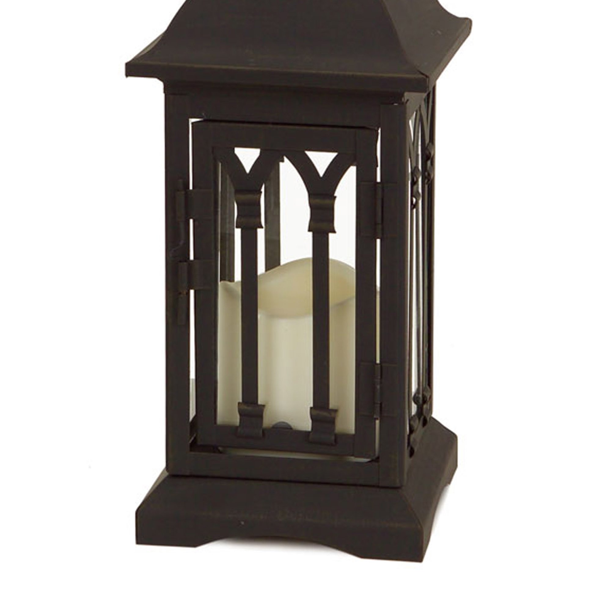 Welcome your guests with this stunning Lantern with LED Candle included. Its traditional design paired with the simple black finish is the perfect combination to make a timeless and stunning piece. The peice is illuminated by a 3" x 6" LED candle. The lantern is a great addition to both every day and seasonal home decor. The sturdy metal composition is sure to last for seasons to come.