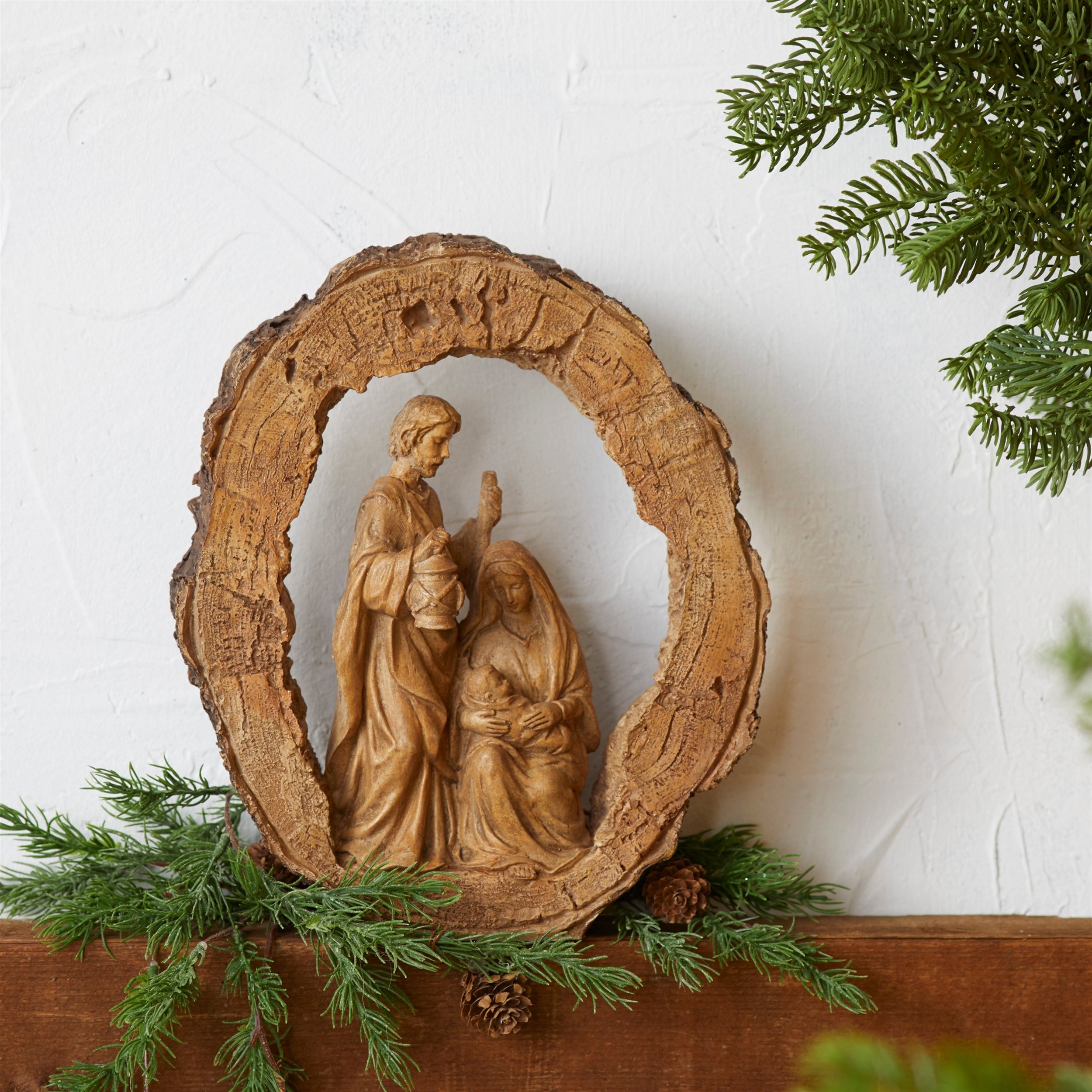 Enhance your holiday home decor with this Holy Family Tree Disc Sculpture. Measuring 11.5" tall, the traditional nativity design and earthy brown tones makes this piece a great addition to any style of Christmas decor. The quality resin composition is sure to last for seasons to come. Display the pieces together to make a statement, or display along with other decor to spread the holiday cheer.