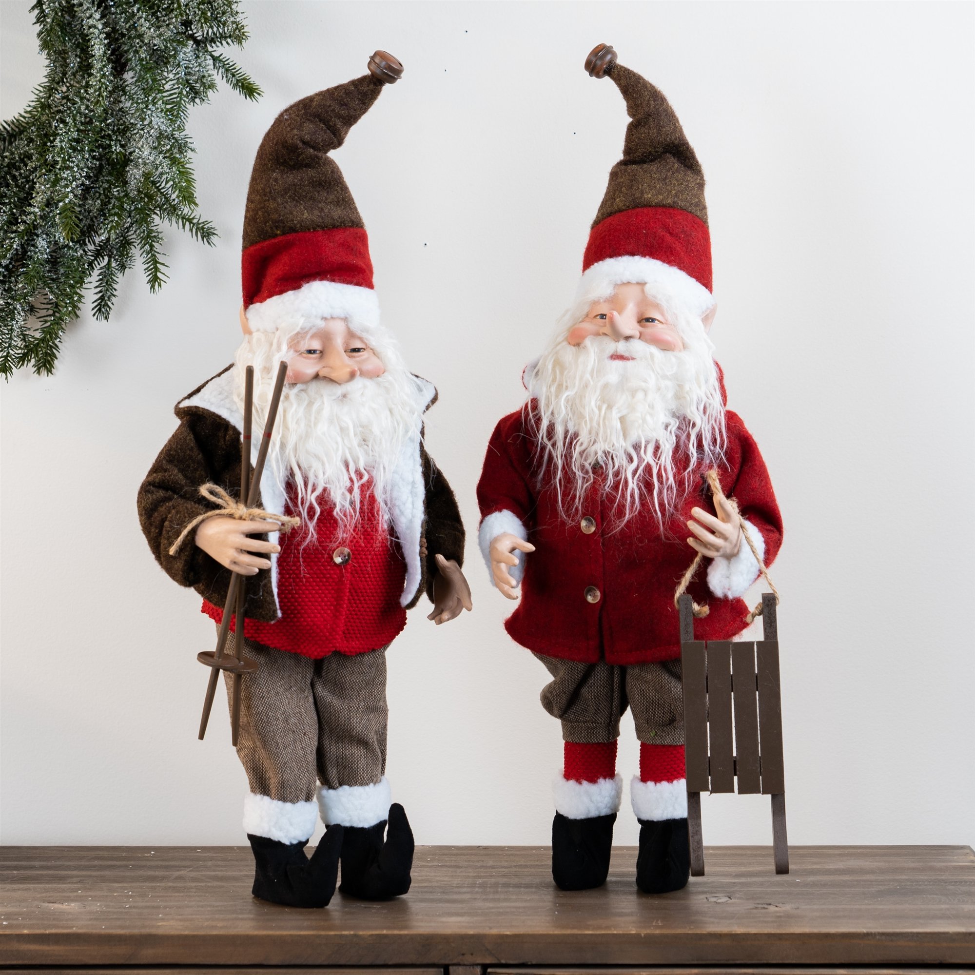 Add a whimsical touch to your holiday home decor with this adorable set of Santa Figurines. Featuring two assorted designs, the classic red and brown color scheme paired with the ski and sled accents is the perfect combination to create a stunning Christmas display. The quality polyester and polyresin composition is sure to last for seasons to come. Display the pieces together to make a statement, or display them alongside your other holiday decor to add character to the space.
