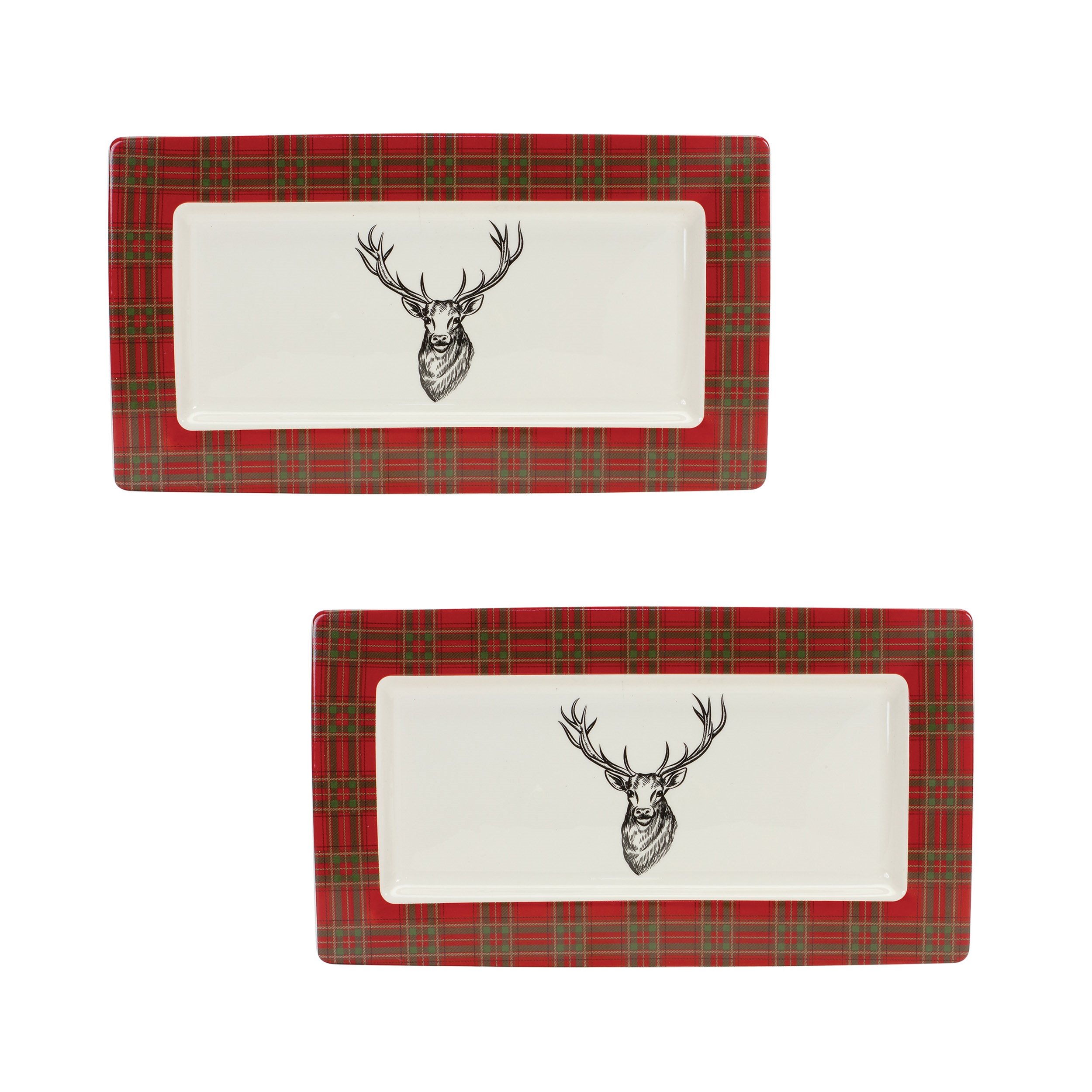 Plaid and Deer Platter (Set of 2) 13.25"L x 7.5"W x .75"H Ceramic