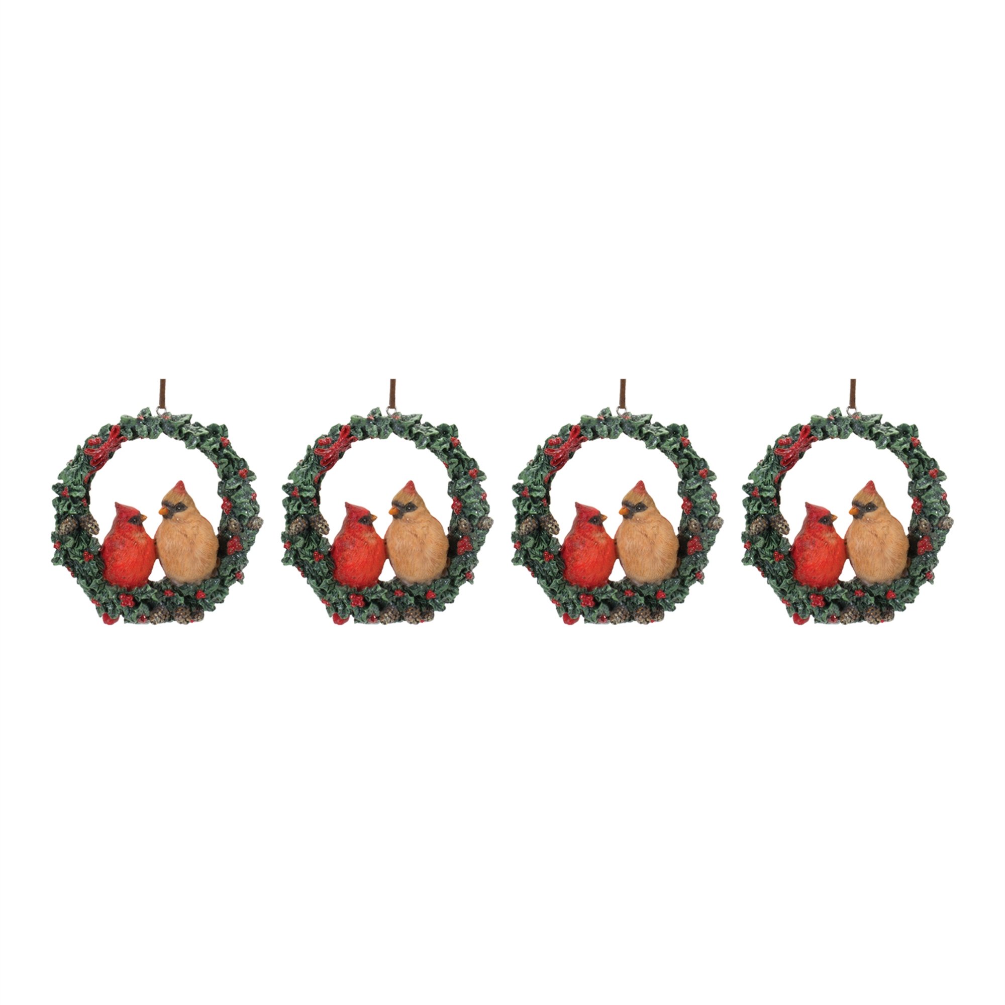 Cardinal Wreath Ornament (Set of 4) 4.5"H Resin Cardinal Wreath Ornament (Set of 4) 4.5"H Resin