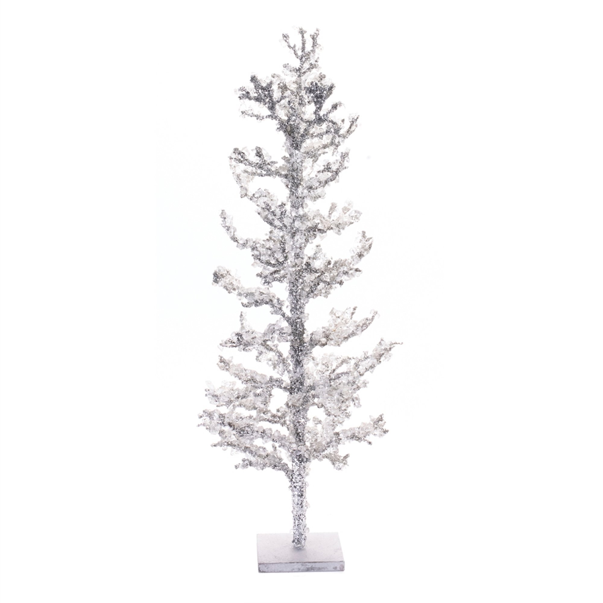 Enhance your winter decor with this stunning Jeweled Twig Tree. Measuring 24" tall, this piece is a great fit for your chic traditional or modern style of holiday decor. The festive silver tones paired with the icy jeweled accents are the perfect combination to create a memorable display. The quality acrylic and iron metal composition is sure to endure for seasons to come. Display the piece on your mantle or tabletop display to make a statment in your home.