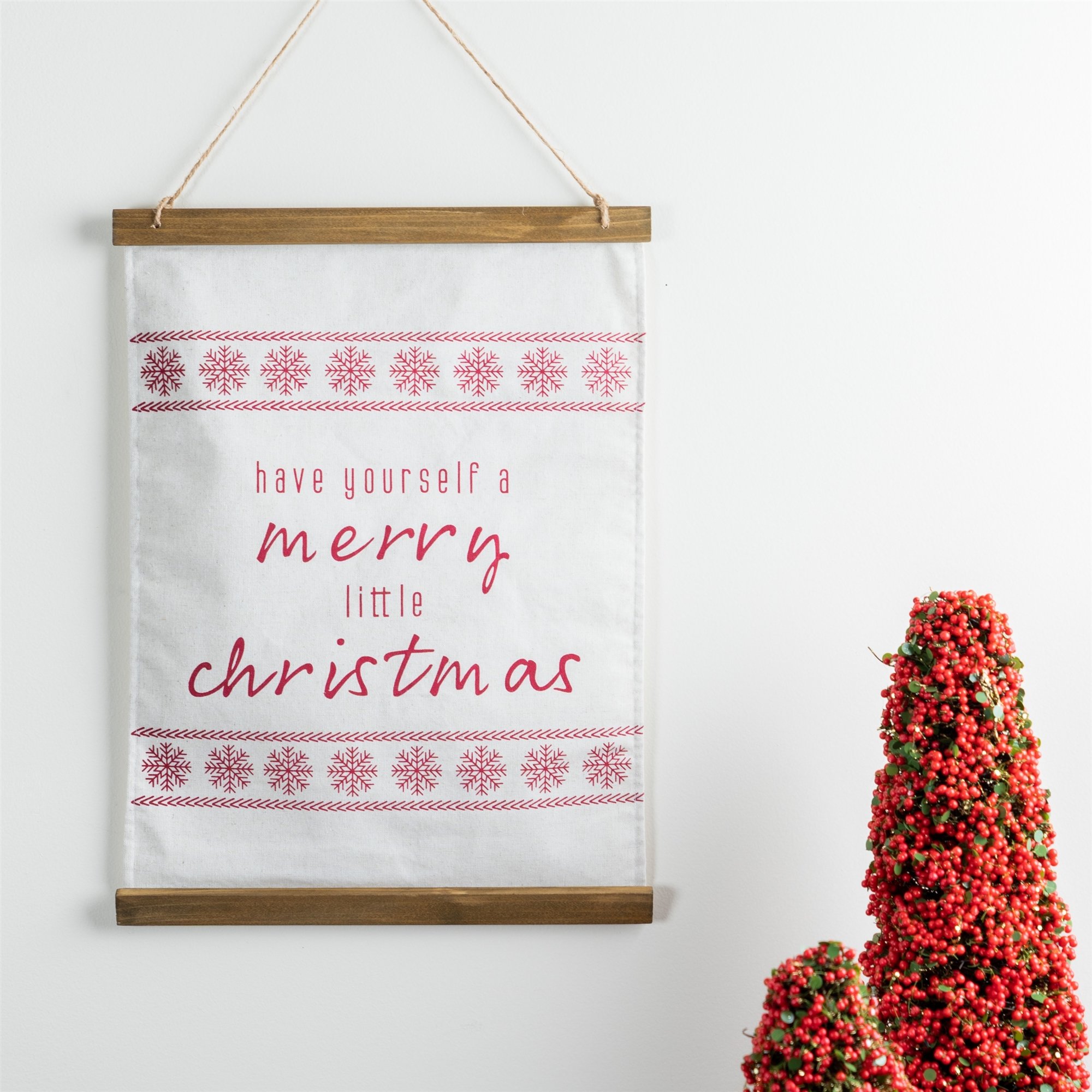 Spread some holiday cheer and create a festive atmosphere with the Merry Christmas Wall Banner! This beautiful wall decor piece is designed to bring warmth and joy to your home this season. Featuring warm beige and red tones and the sentiment "Have Yourself a Merry Little Christmas!", it is sure to be the perfect addition to your holiday decor. Get yours today and celebrate the season in style!