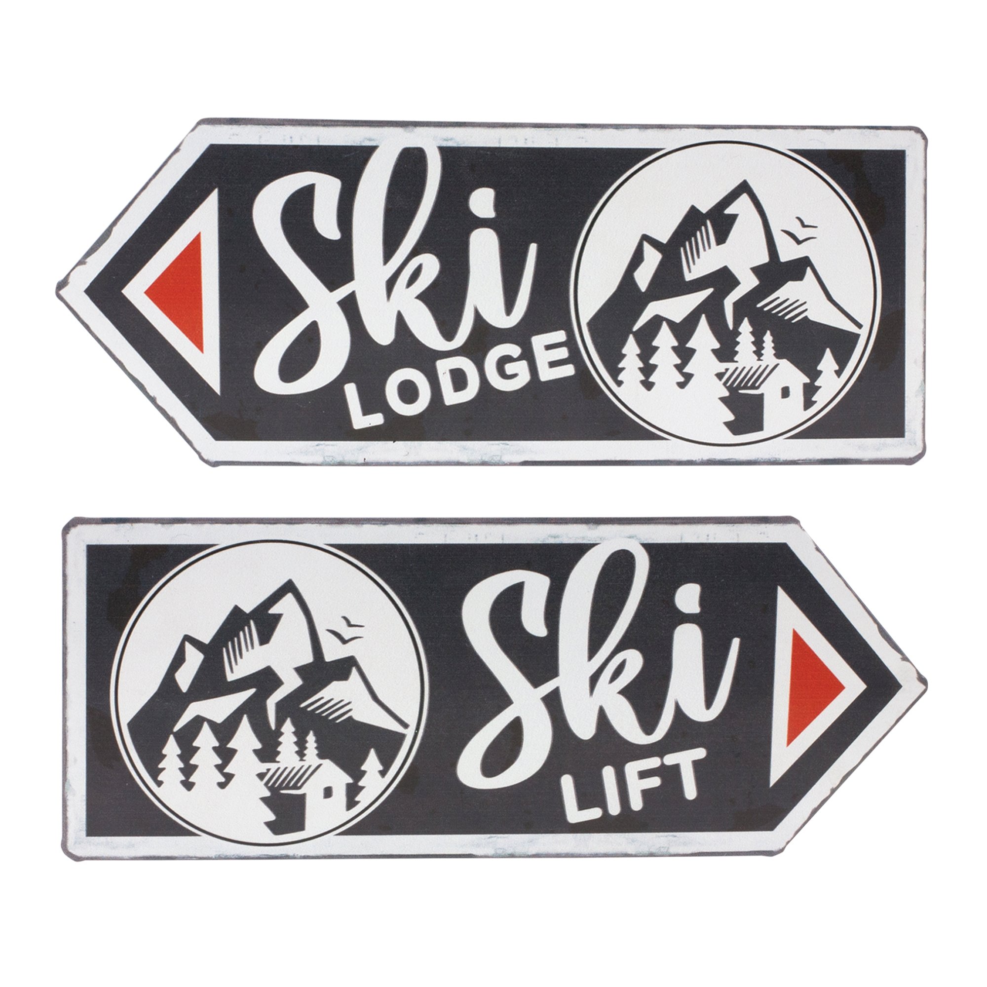 Ski Lift and Lodge Arrow Sign (Set of 6) 11.75"L x 4.75"H Tin