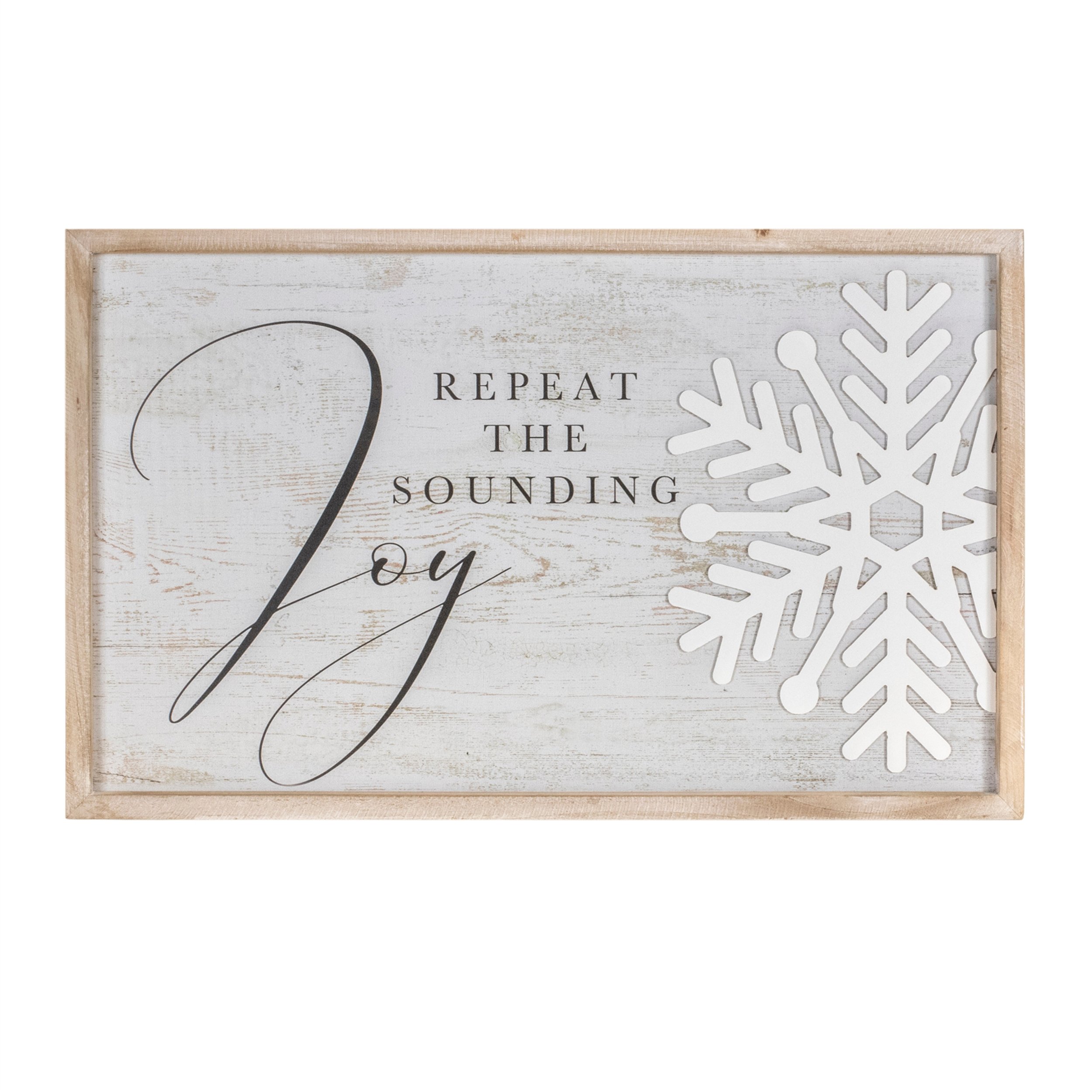 Get your home into the holiday spirit with this set of Joy Wall Plaques! This festive wall art will bring warmth and holiday cheer to any room. With its wintry red and grey tones and sentiment "Repeat the Sounding Joy", this set will make a memorable display. The MDF wood composition ensures a durable yet lightweight piece that will last for years to come. Adorn the wall of your home or gift this piece to a loved one to share the holiday spirit with all.