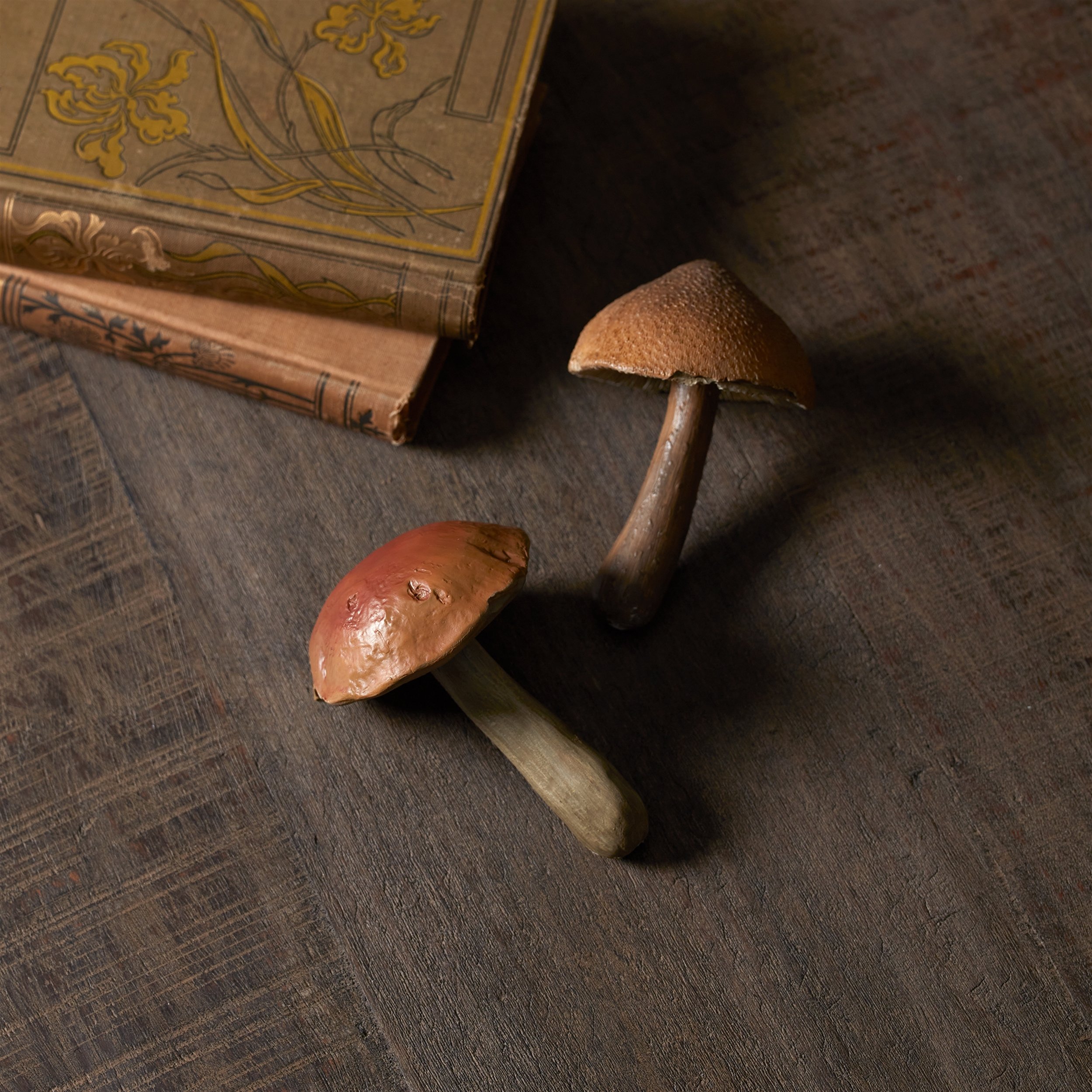 Add a woodland touch of nature to your home this spring season with a beautiful set of Mushroom Shelf Sitters. Featuring six pieces and two assorted designs, this set is a great fit for your country cottage or rustic forest style of decor. The cool brown and beige tones paired with the realistic mushroom designs are perfect to create a memorable display. The quality polyresin and stone powder composition is sure to endure for seasons to come. Display the pieces on your bookshelf or coffee table to make a statement, or gift them to a fellow nature-lover to share the beauty!
