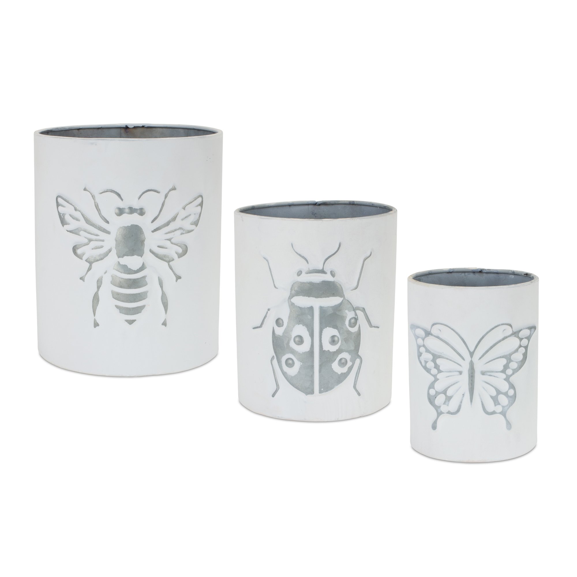 Display your indoor plants in style with this beautiful set of Metal Insect Pots. Featuring three assorted sizes, this set is sure to fit in with any style of home decor. The cool grey and white tones paired with the white-washed finish and insect accent is the perfect combination to create a stunning display. The quality terracotta clay composition is sure to last for seasons to come. Complete the look by adding a potted plant or bunch of dried florals to each pot. The designs include bumble bee, lady bug, and butterfly.