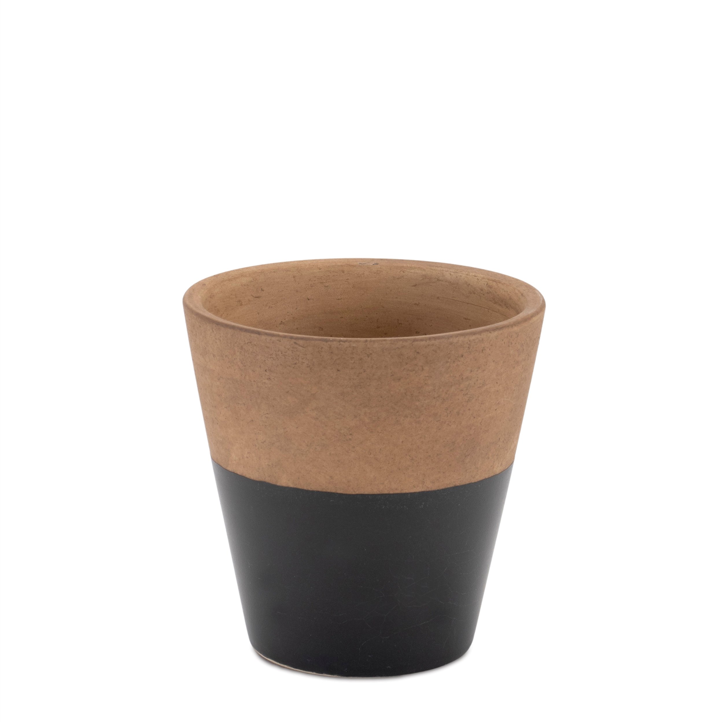 Let your indoor plants flourish with this stunning set of Tapered Planters. Featuring two assorted sizes, the trendy brown and black tones paired with the tapered shape and trendy two-tone color design are perfect to create a memorable display. The quality terra cotta composition is sure to endure for seasons to come. Insert a live plant or bundle of faux florals into each planter to complete the look, or gift these pots to a fellow plant-lover in your life to share the beauty!