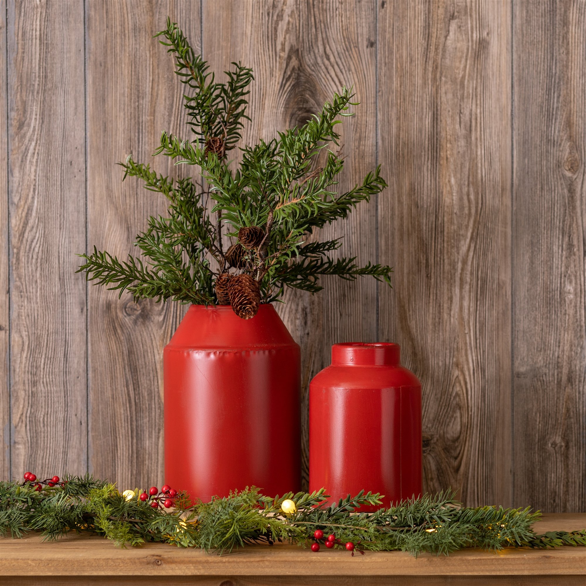 Bring a touch of rustic charm to your home with this stunning set of Metal Vases. This beautiful set is crafted from quality metal with a modern design featuring bright red tones. Perfect for displaying your fresh garden picks in style, don't miss out on this one-of-a-kind piece for your home decor today!