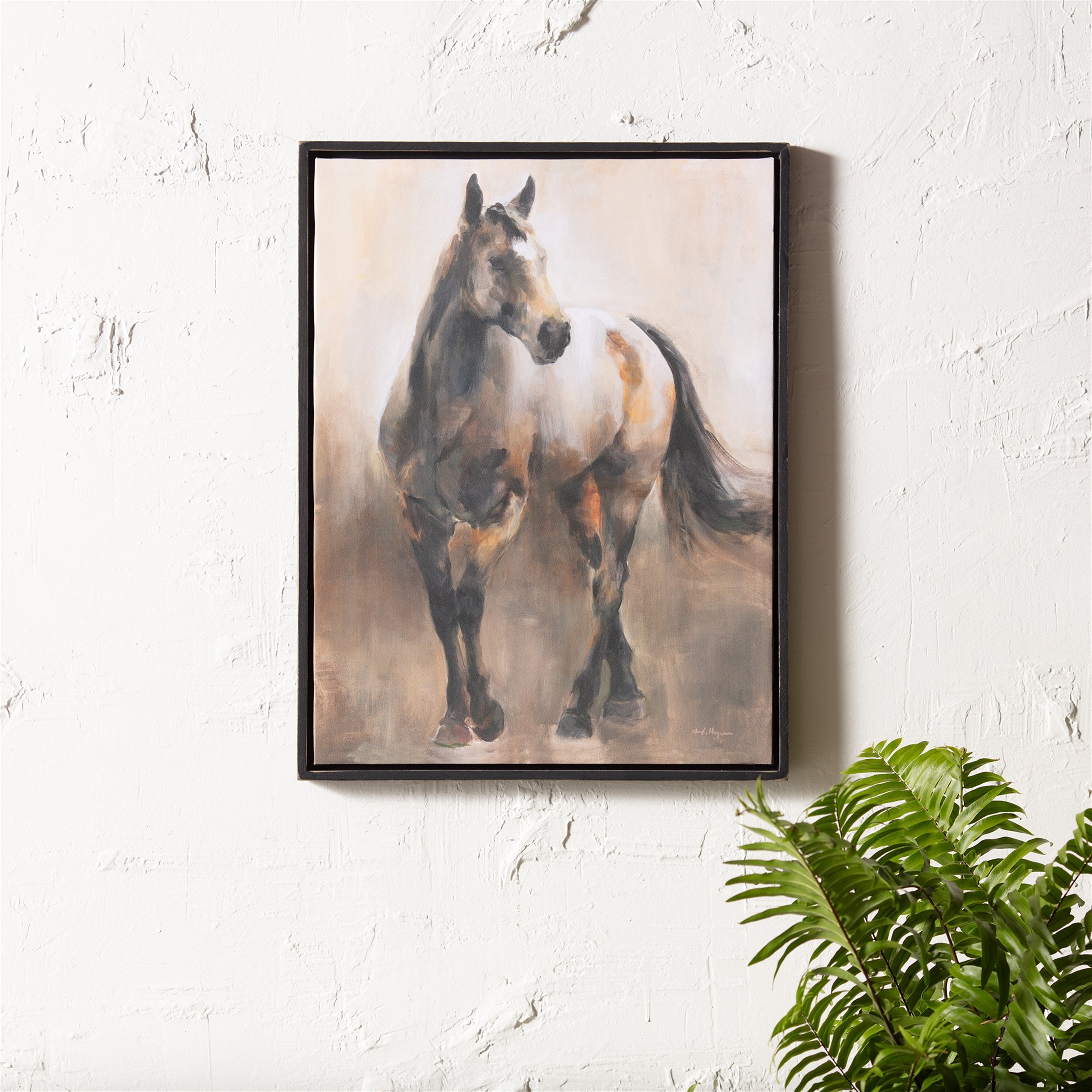Adorn the wall of your home with this stunning Horse Canvas Art. Measuring 24" tall, this piece is a great fit for your modern farmhouse or rustic style of decor. The warm brown and black tones paired with the fir wood frame and elegant horse artwork are perfect to create a memorable display. The quality canvas composition is sure to endure for seasons to come. Display this piece above your mantle or console table display to make a statement, or gift the artwork to a special someone in your life to share the beauty!