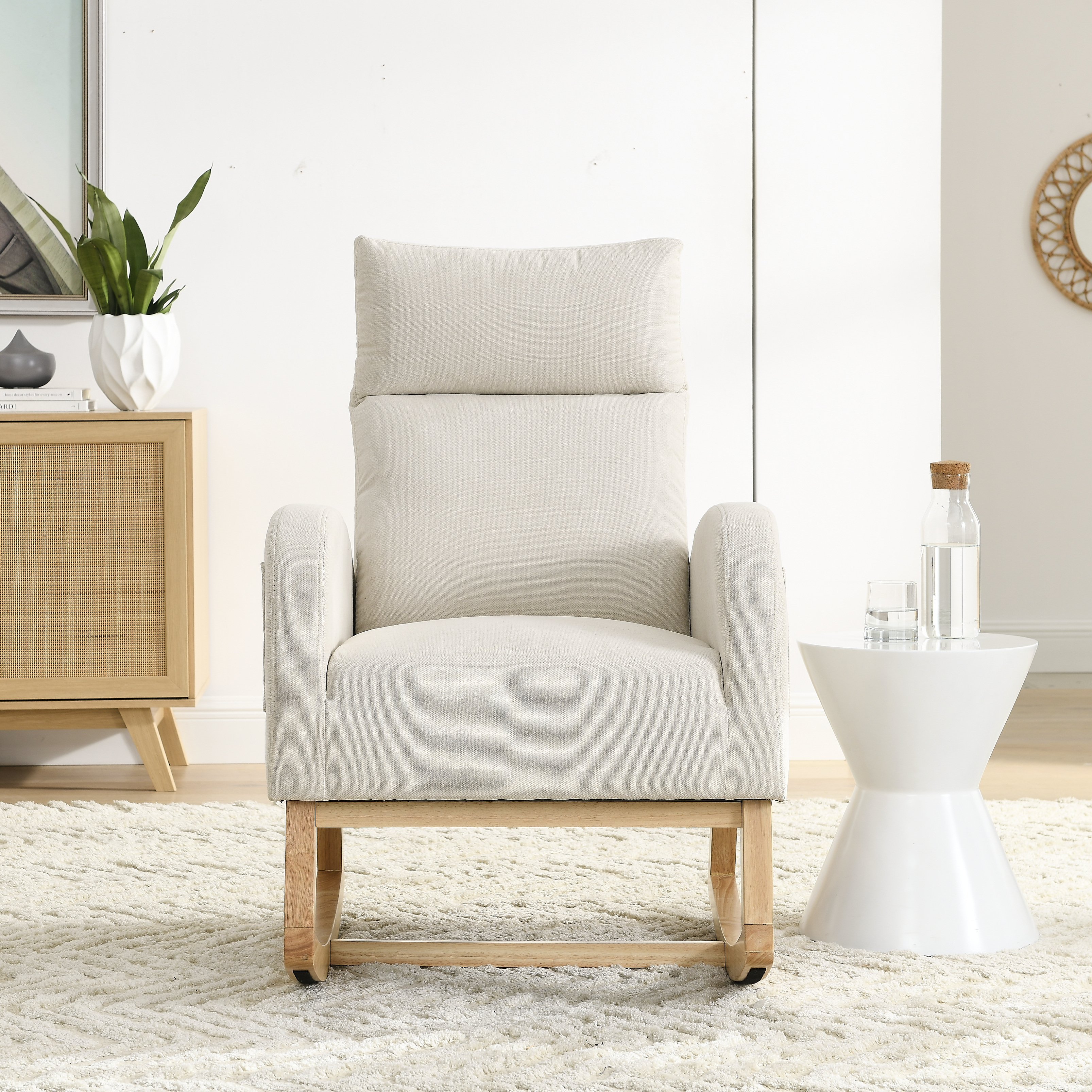 ★[Gently rocking, more comfortable] This rocking chair has an excellent curved design with non-slip feet under the base, making it rock gently and smoothly. Such a thoughtful design is very suitable for leisure or nursery, effectively relieving your fatigue of the day.